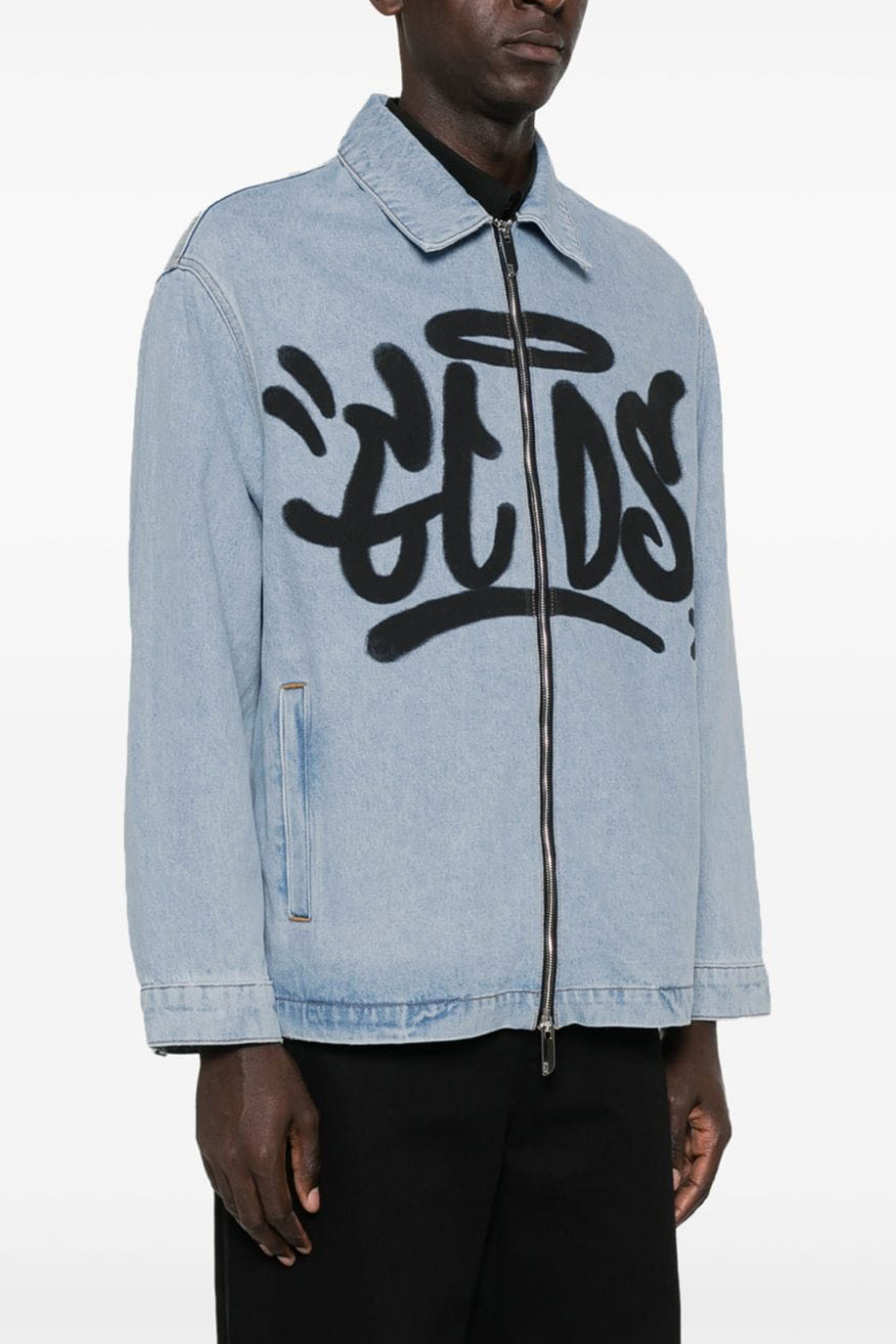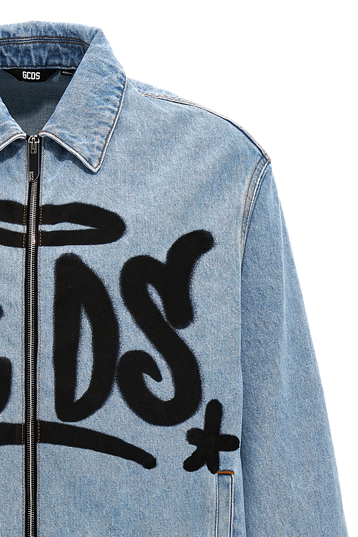'Harrington' cotton denim jacket with graffiti-effect logo print, zip closure, pockets, long cuffed sleeves.