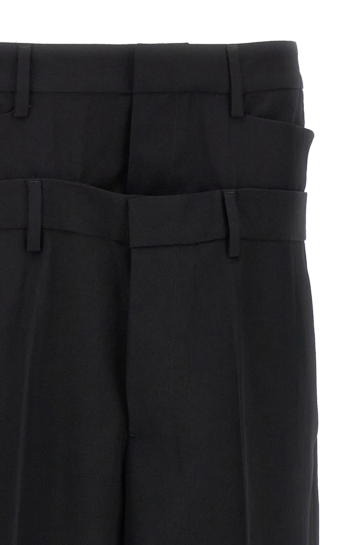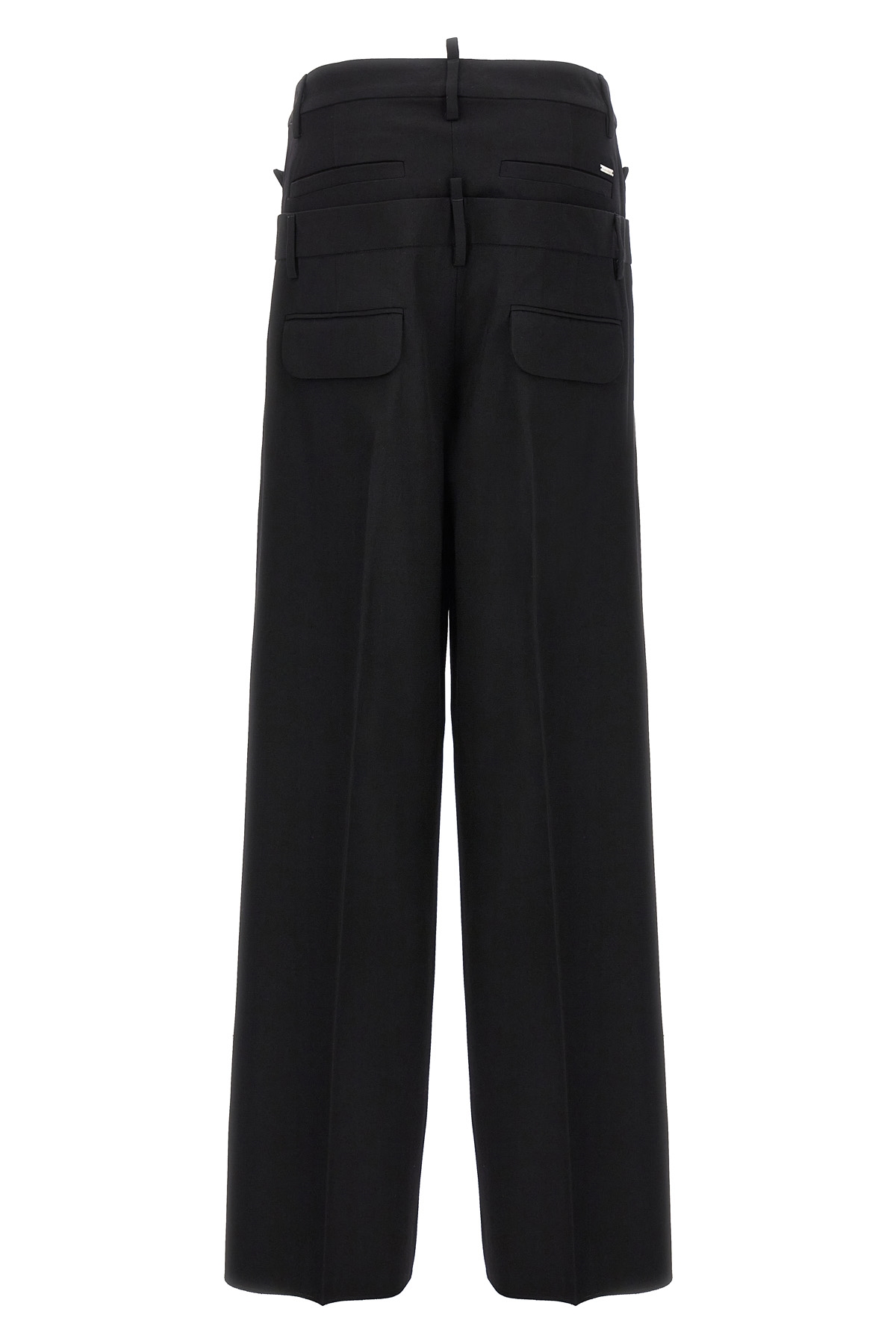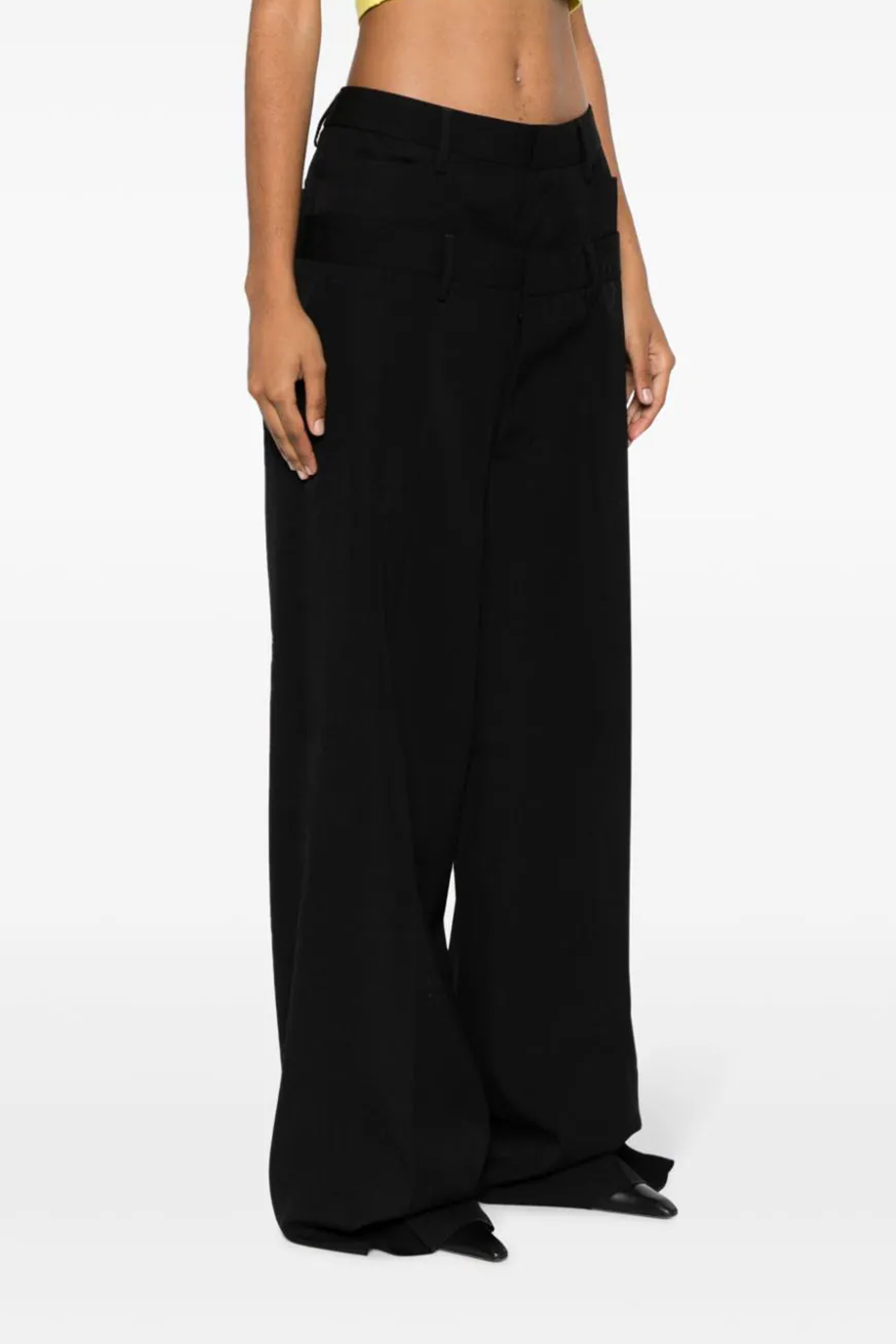 'Twin Pack' wool pants with double waist detail, hook and button zip closure, pockets, wide leg.