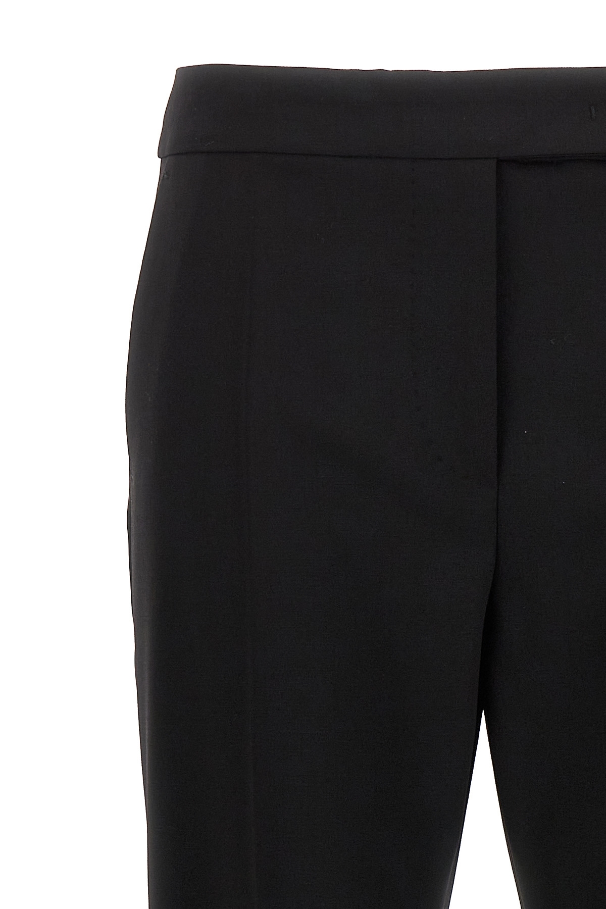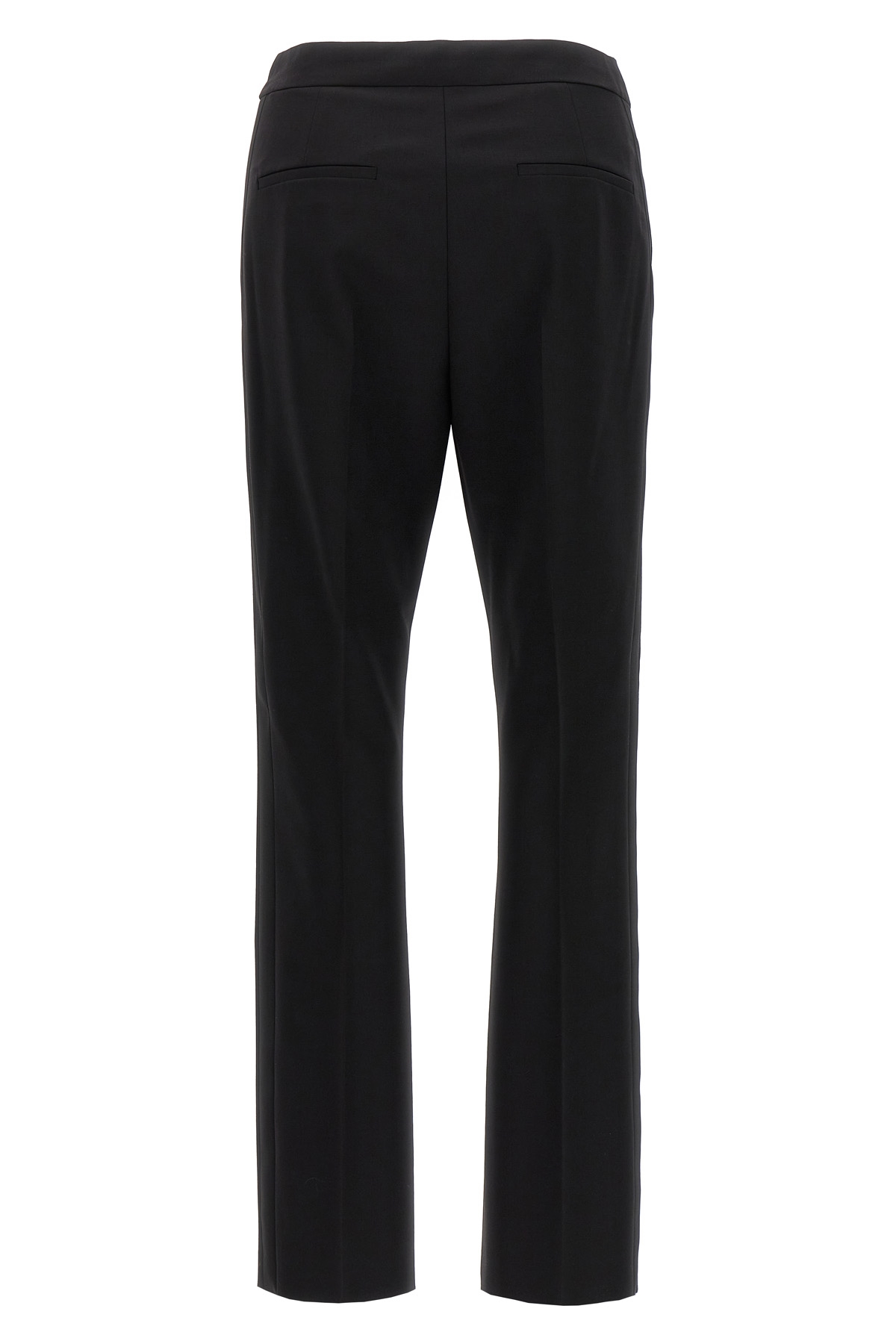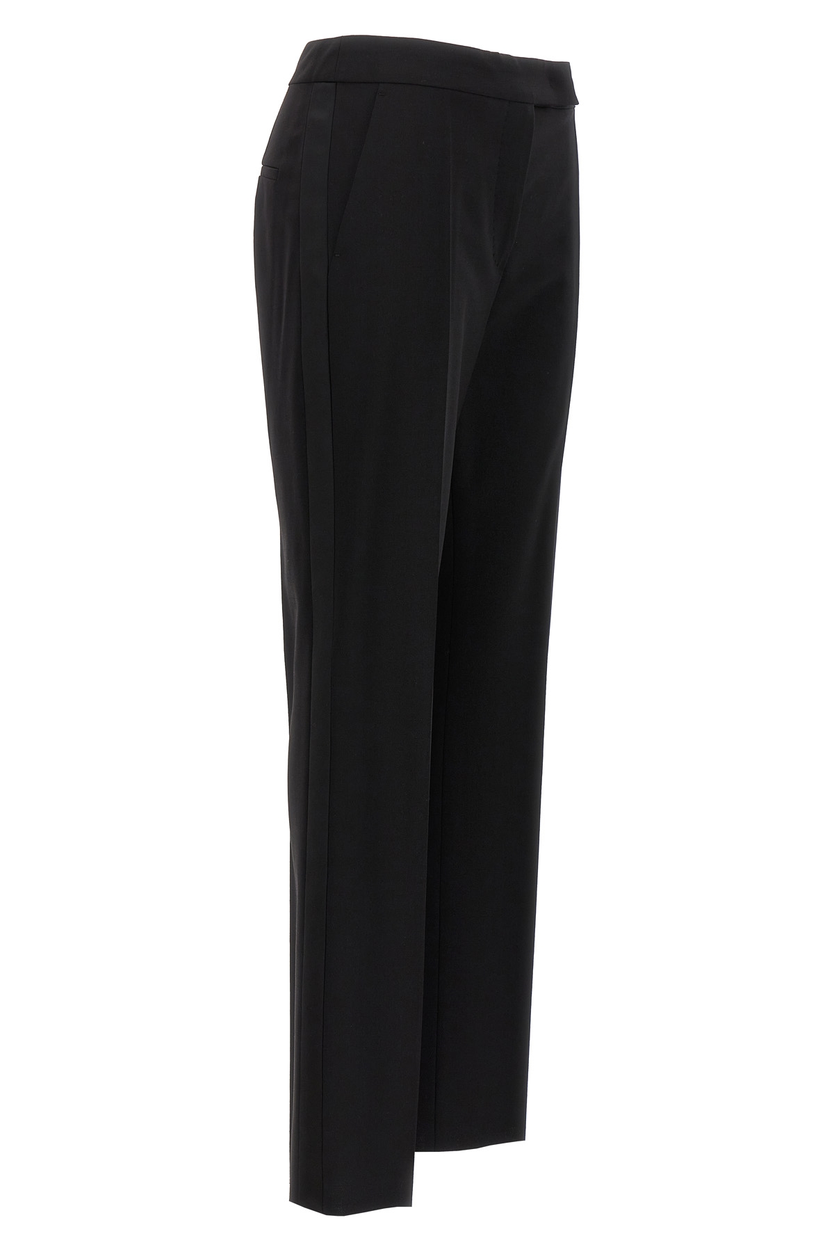 'Rino' wool blend pants with tone-on-tone satin side bands, hook and button zip closure, pockets.