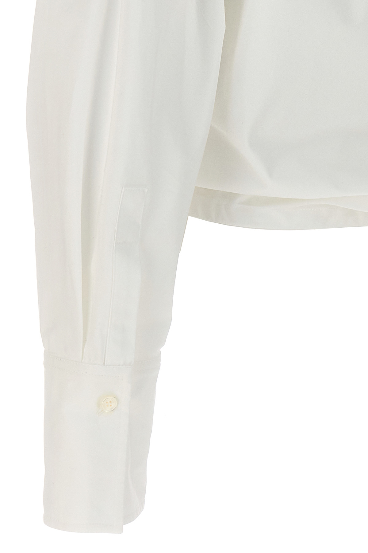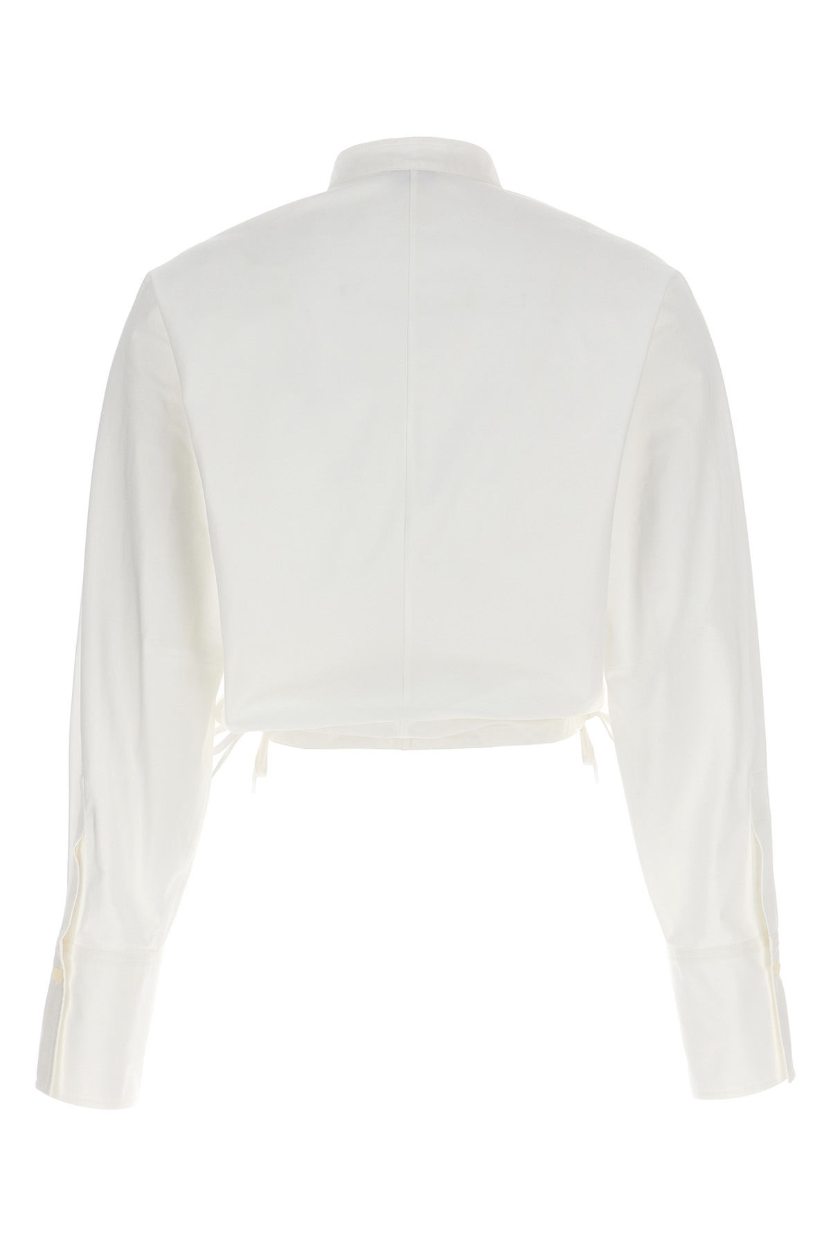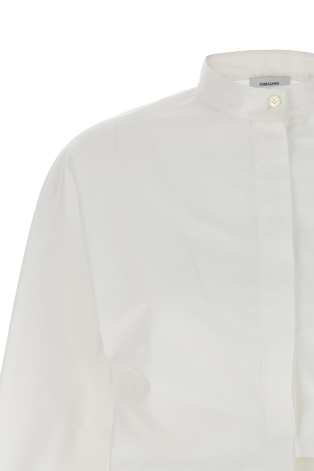 Crop shirt in cotton poplin with mandarin collar, covered button closure and drawstring at the waist.