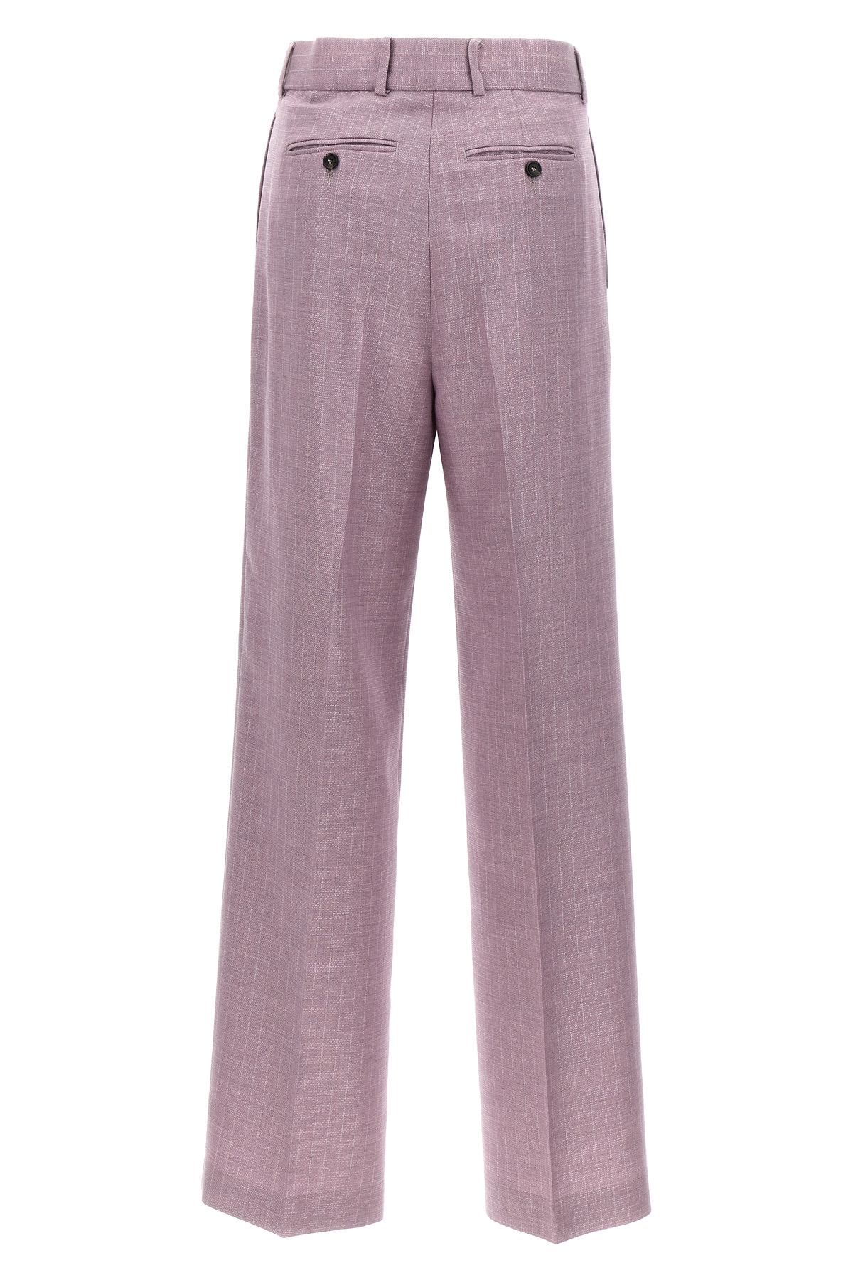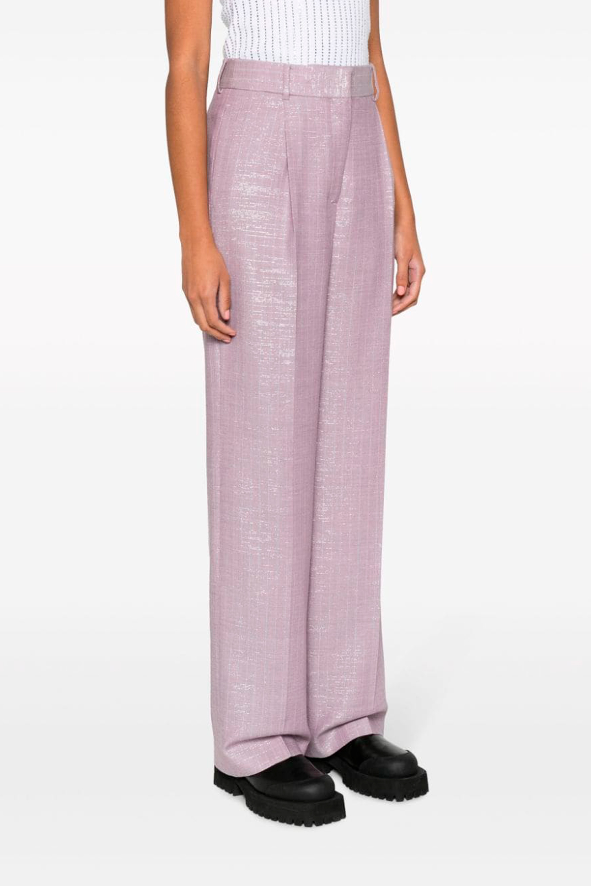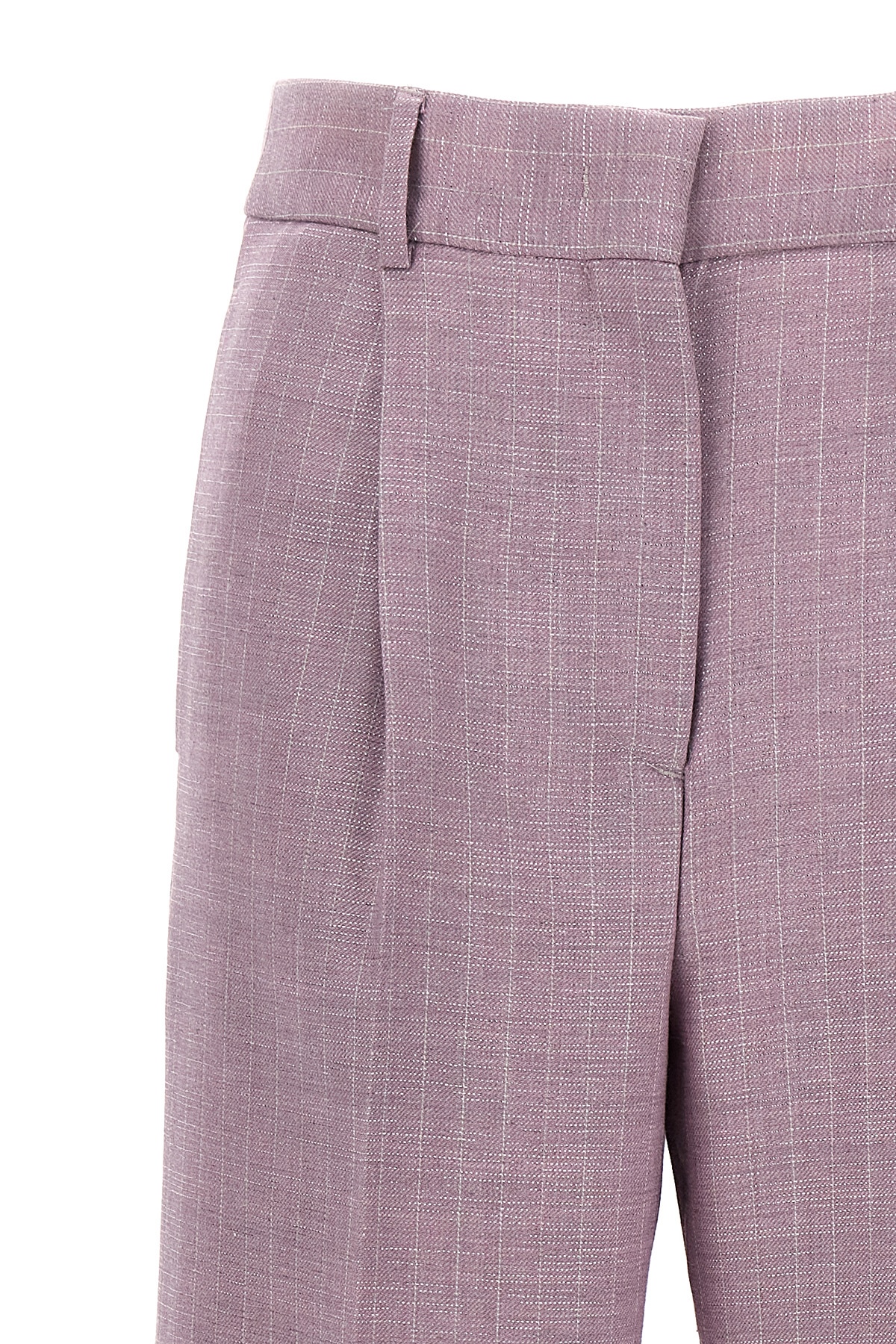 Pinstripe pants in wool blend with lurex yarn, pence and central pleat, pockets, hook and button zip closure.