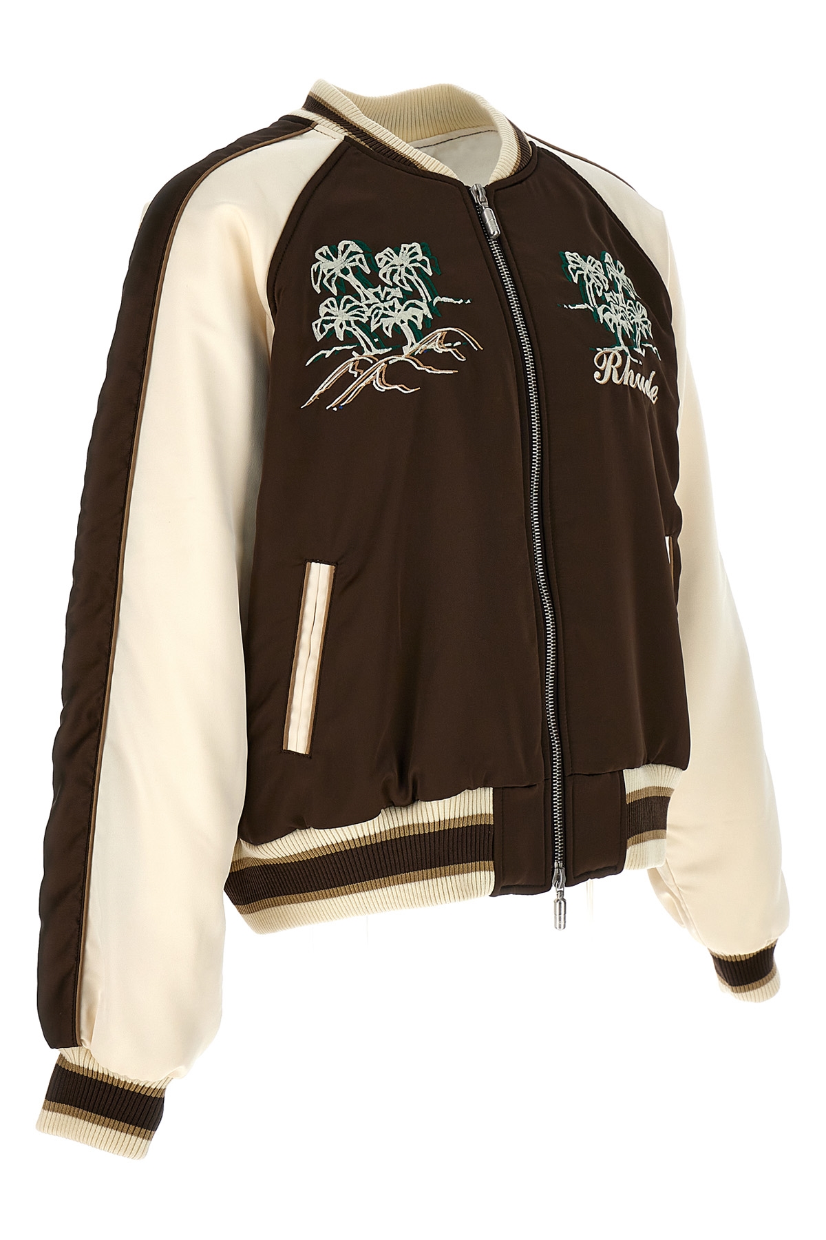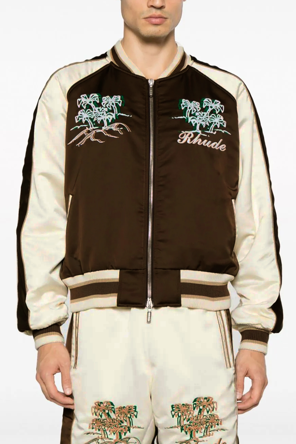 'Crepe satin souvenir' bomber jacket in satin fabric with contrasting embroidery and zip closure.