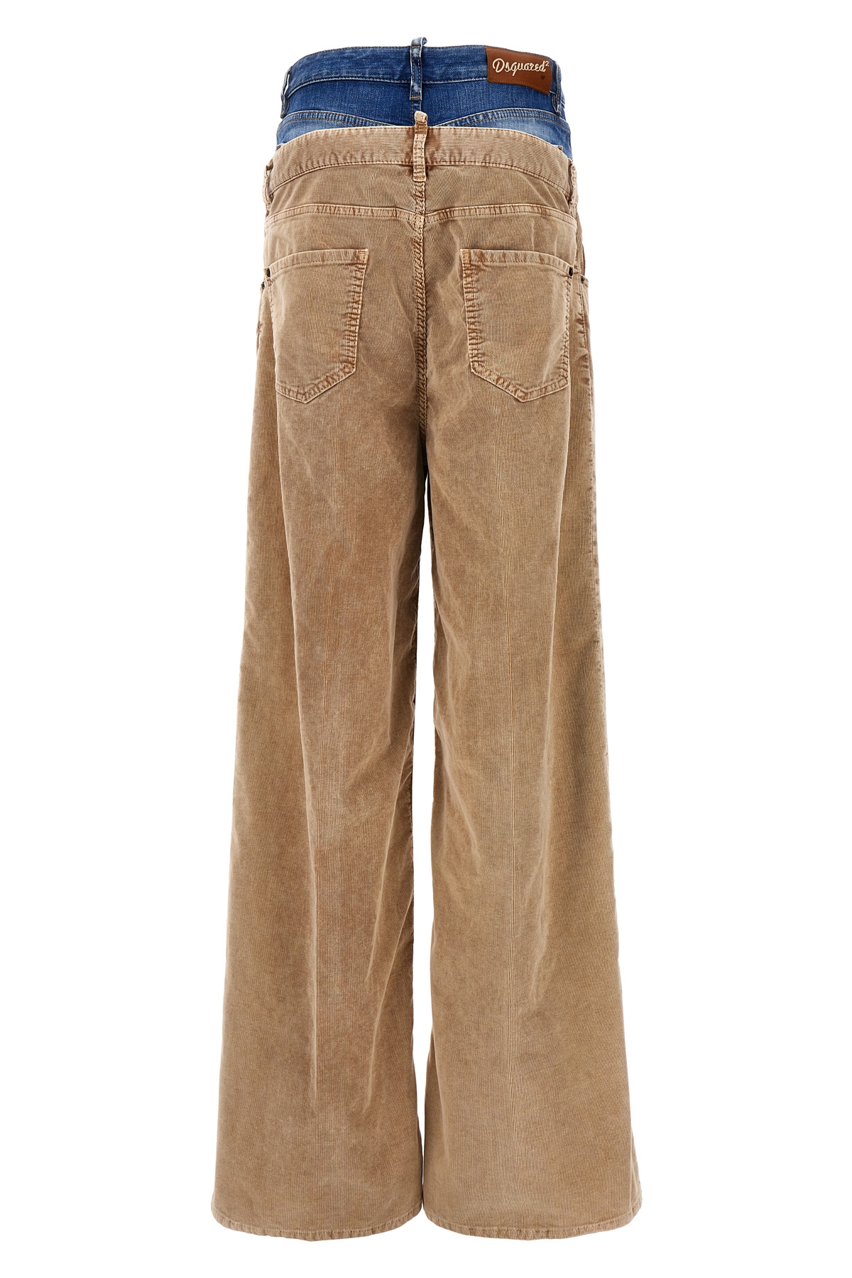 'Twin Pack' corduroy pants with denim insert, button closure, pockets, wide leg, leather logo tag.