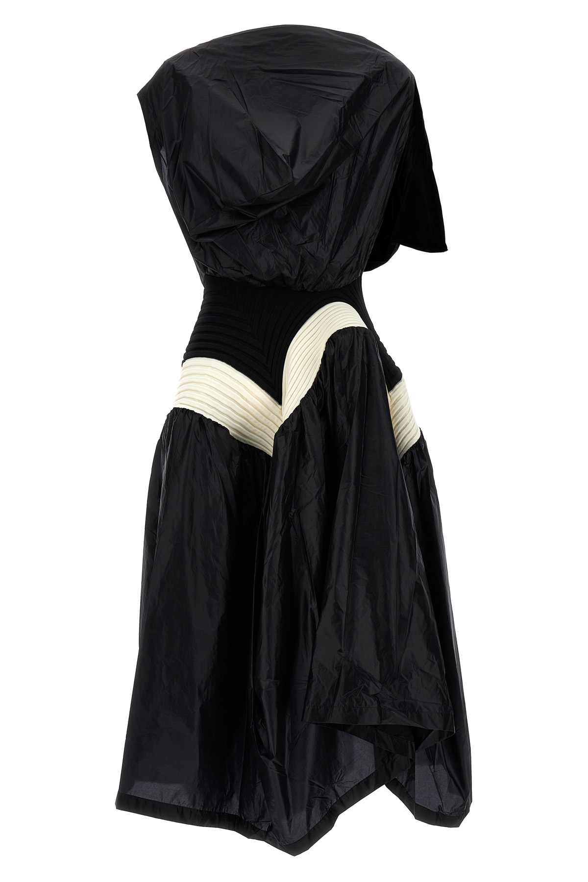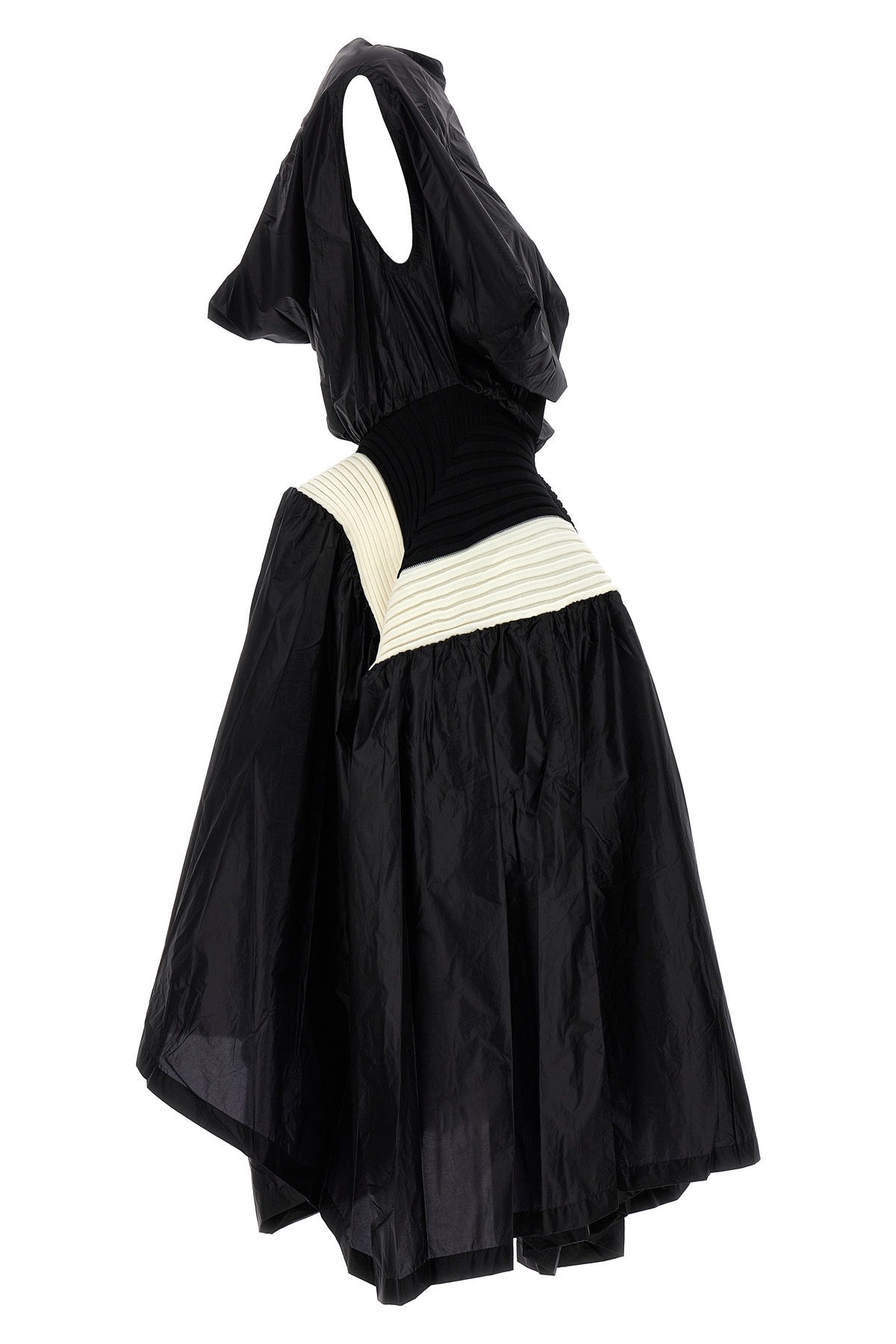 'Square Scheme 2' knit and nylon dress with boat neck, short sleeves.