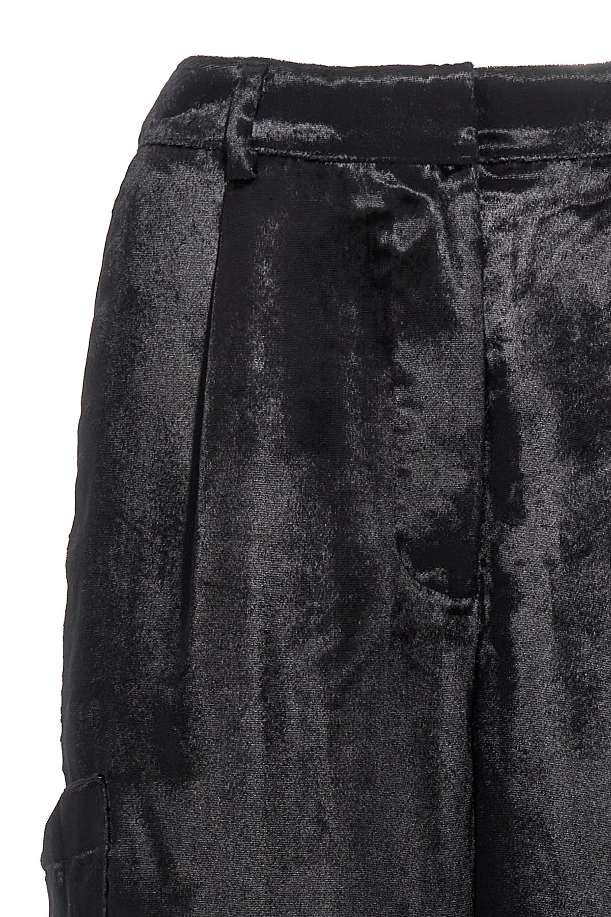 'Luli' velvet cargo pants with hook-and-eye zip and button closure, pockets. JULIAN SUSTAINABLE: This product is made in OEKO-TEX materials.