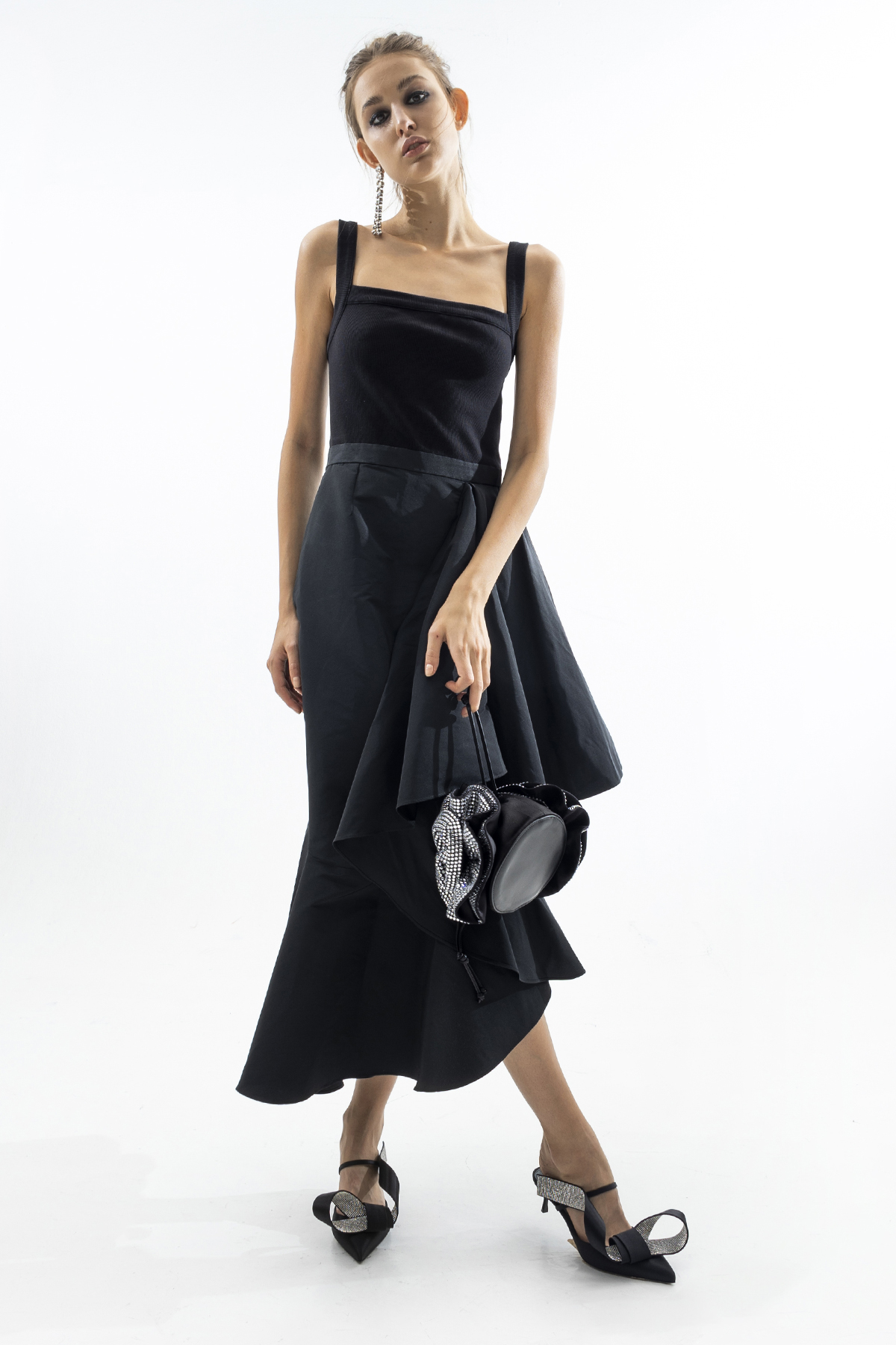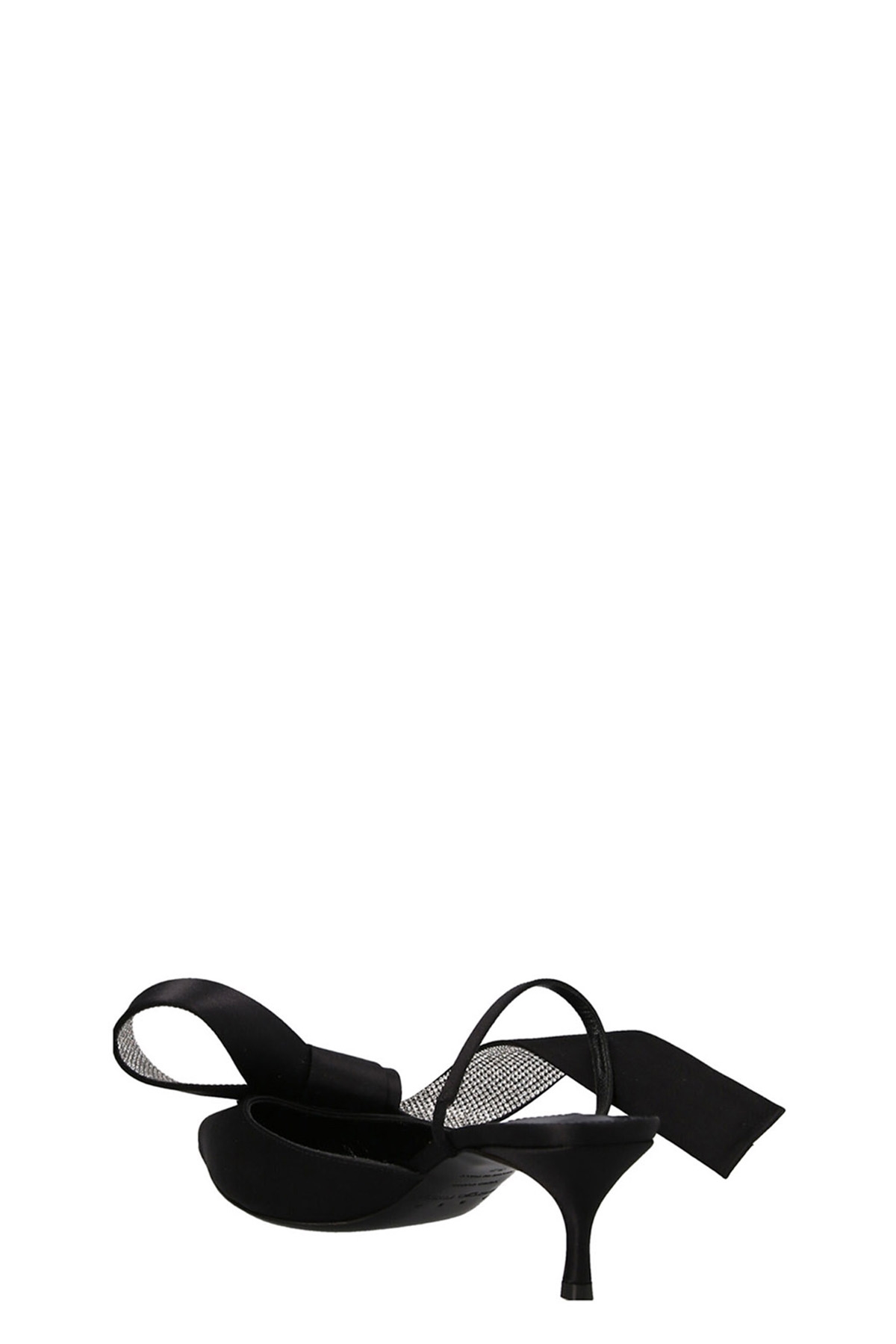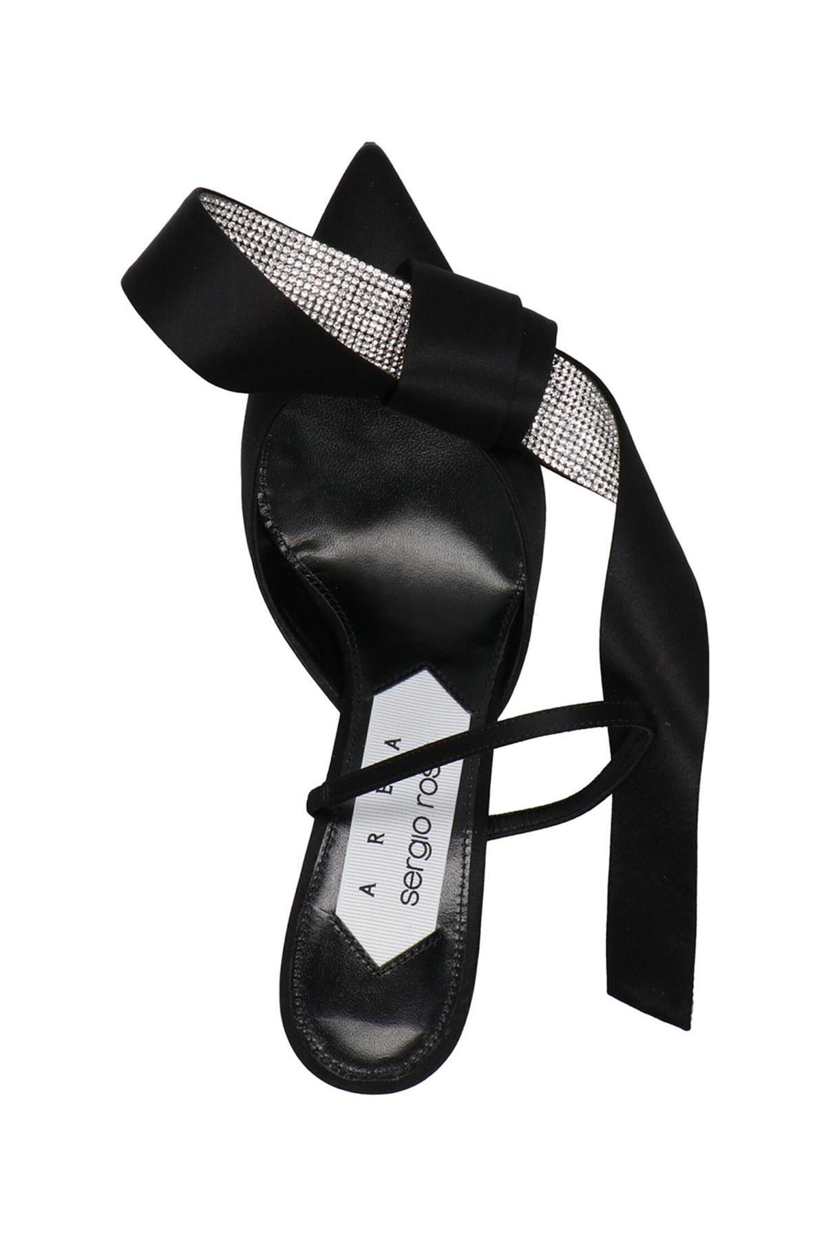 Sergio Rossi x AREA 'Area Marquise' mules in satin with maxi bow and crystals, pointed and low heel.