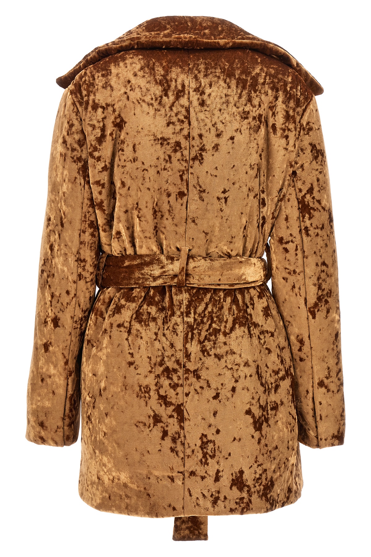 Padded velvet 'Crushed velvet' coat with no removable belt closure.