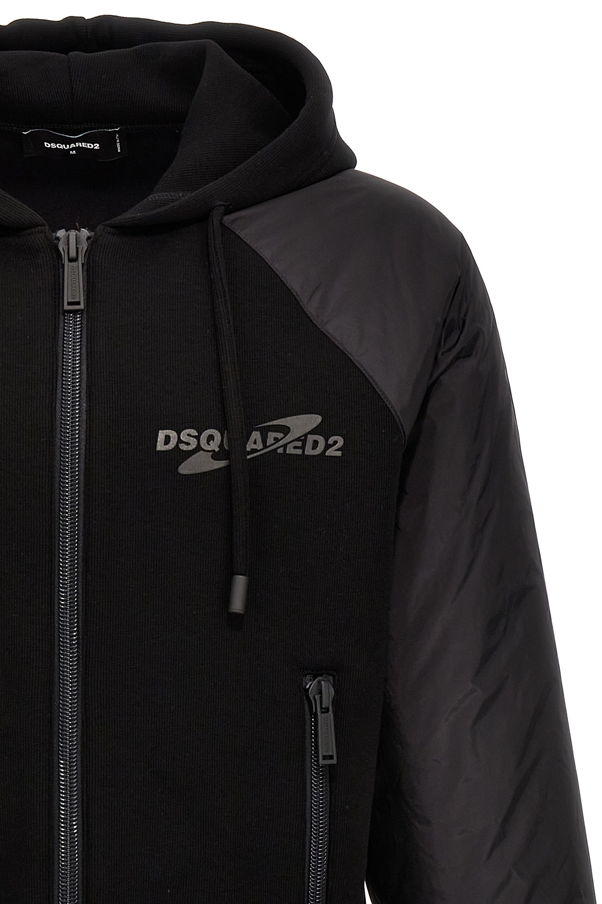 'Ibra' stretch viscose hoodie with front logo print, padded nylon sleeves with elastic cuffs, pockets.
