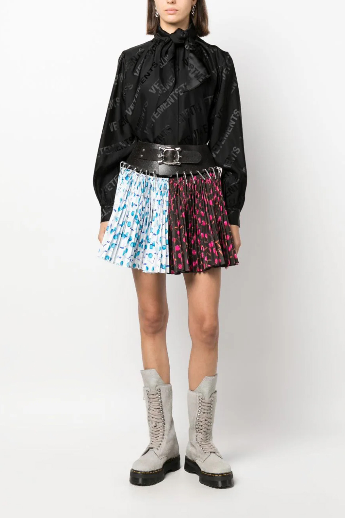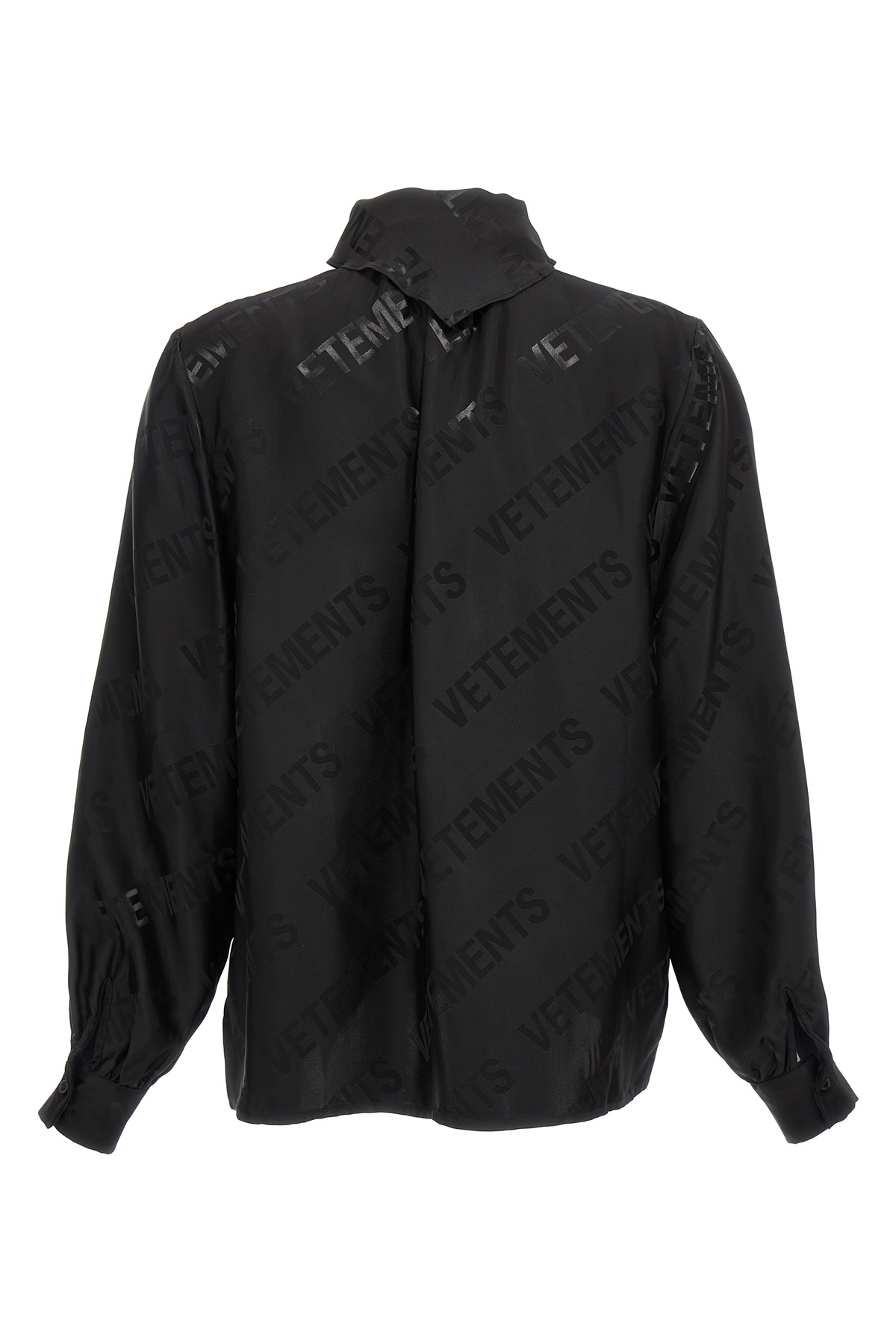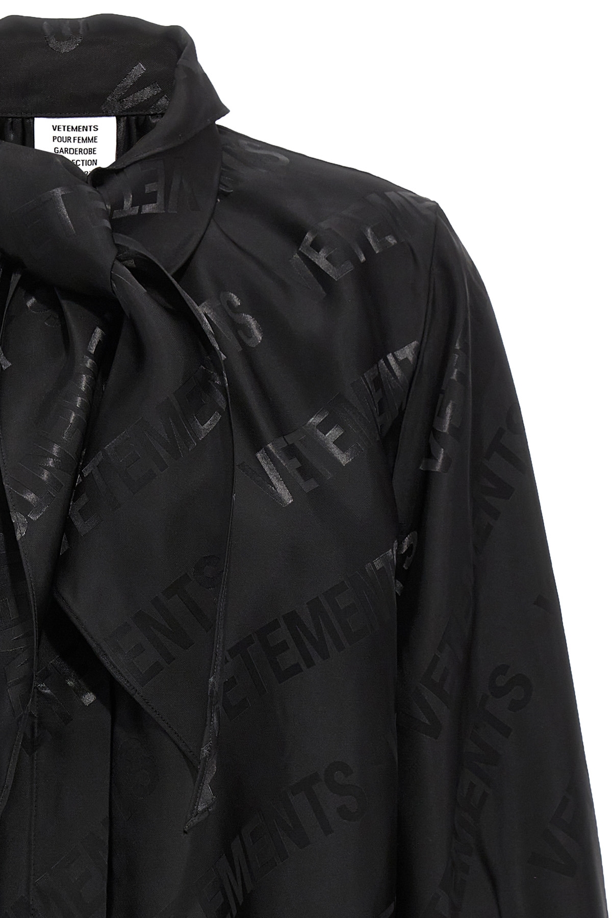 'Monogram' viscose blouse with all-over jacquard logo, covered buttons, and neck bow.