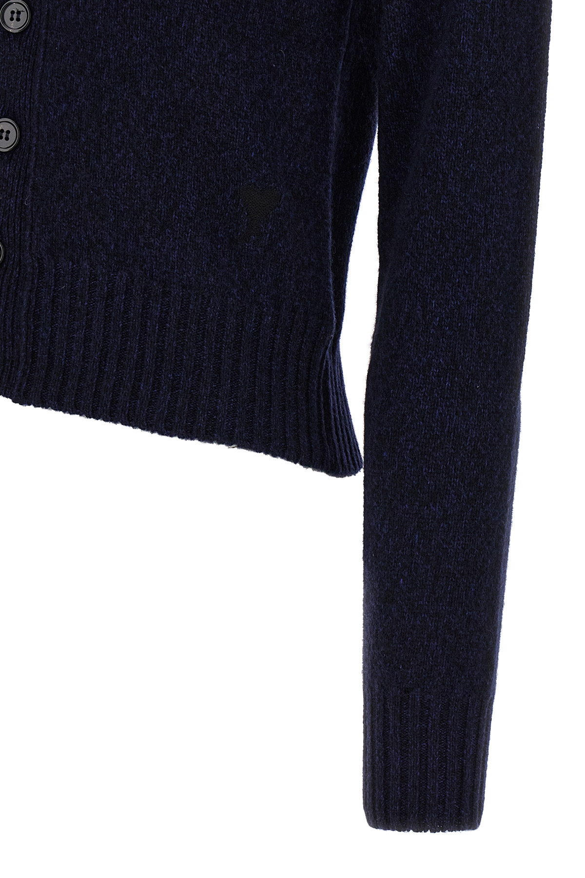 'Ami De Coeur' cashmere and wool cardigan with tone-on-tone embroidered logo, button closure, long cuffed sleeves.