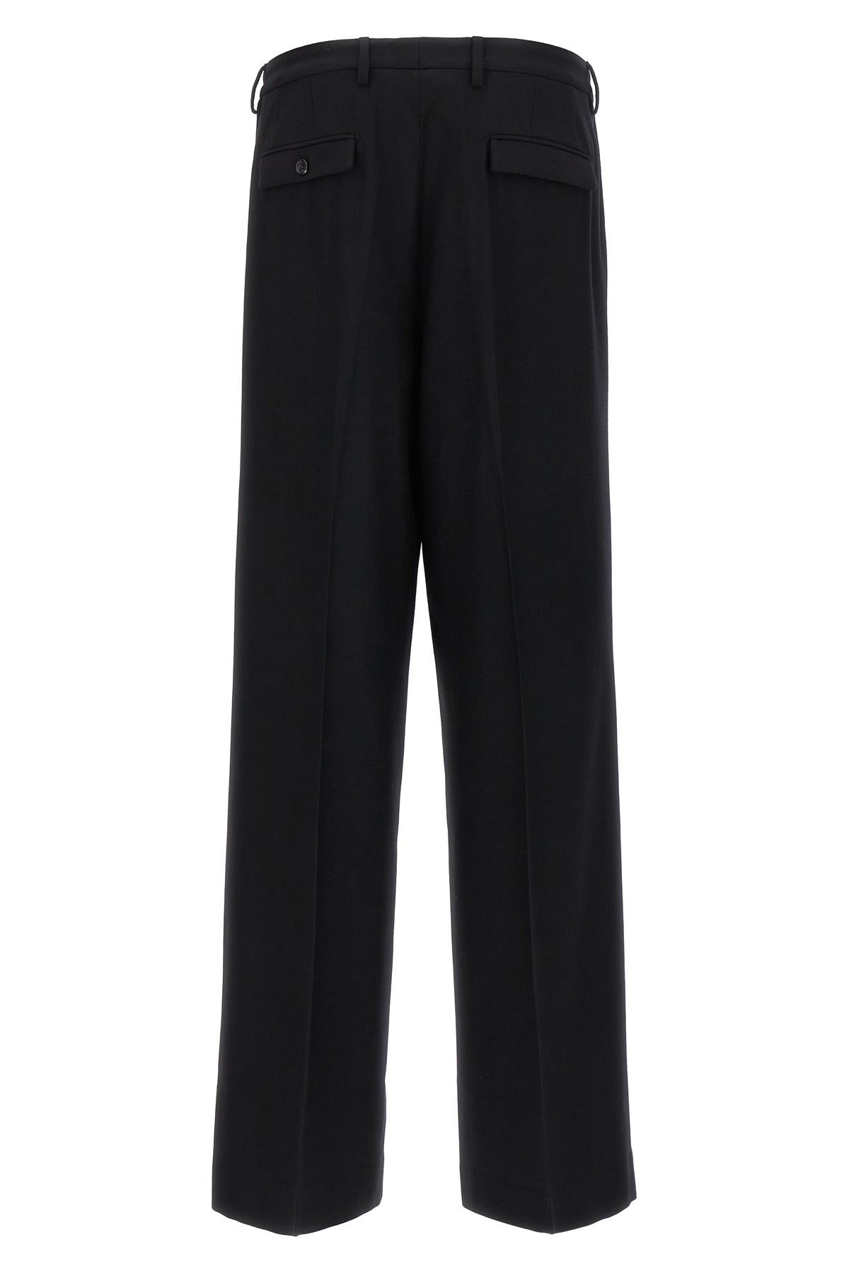 'Jona P' stretch wool pants with loose leg and maxi ankle turn-ups.