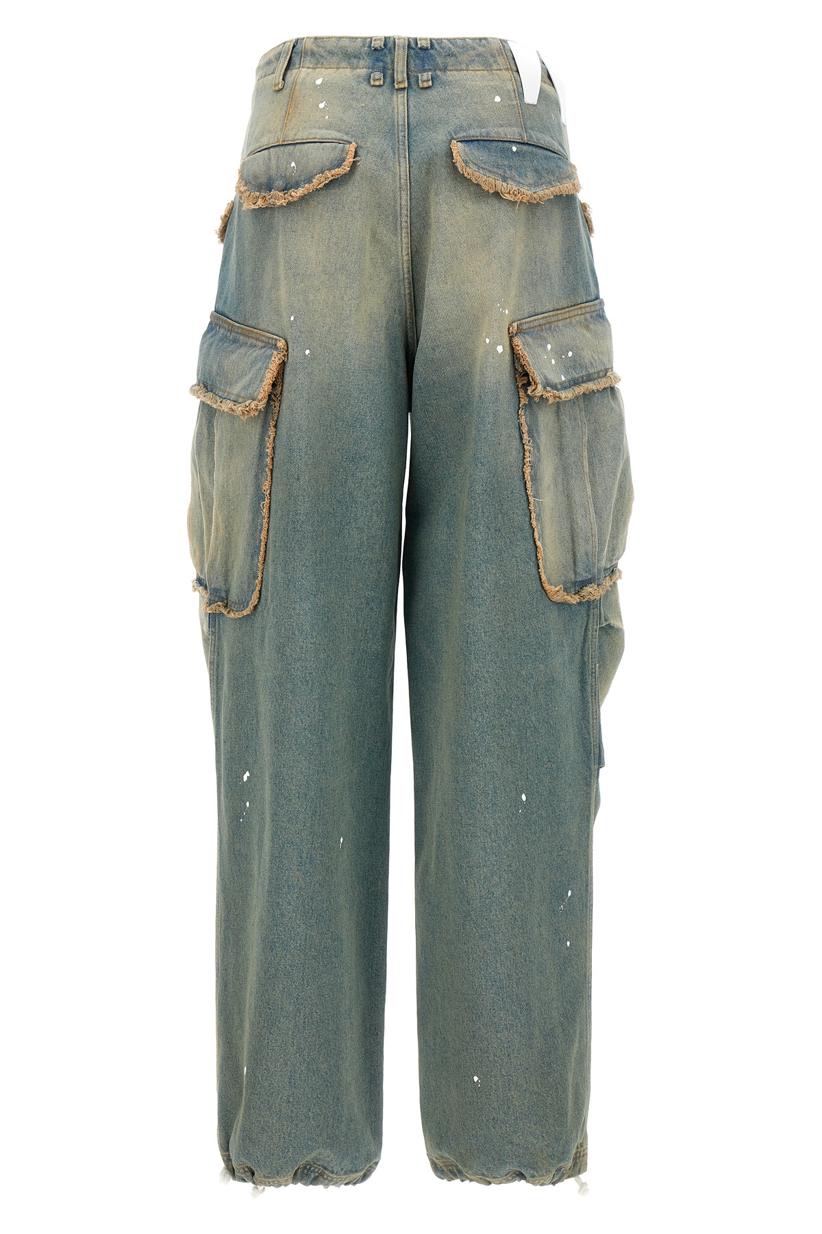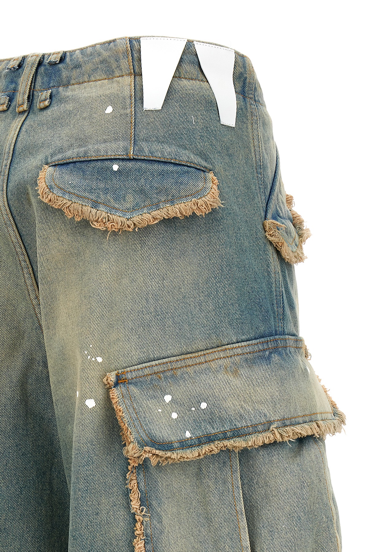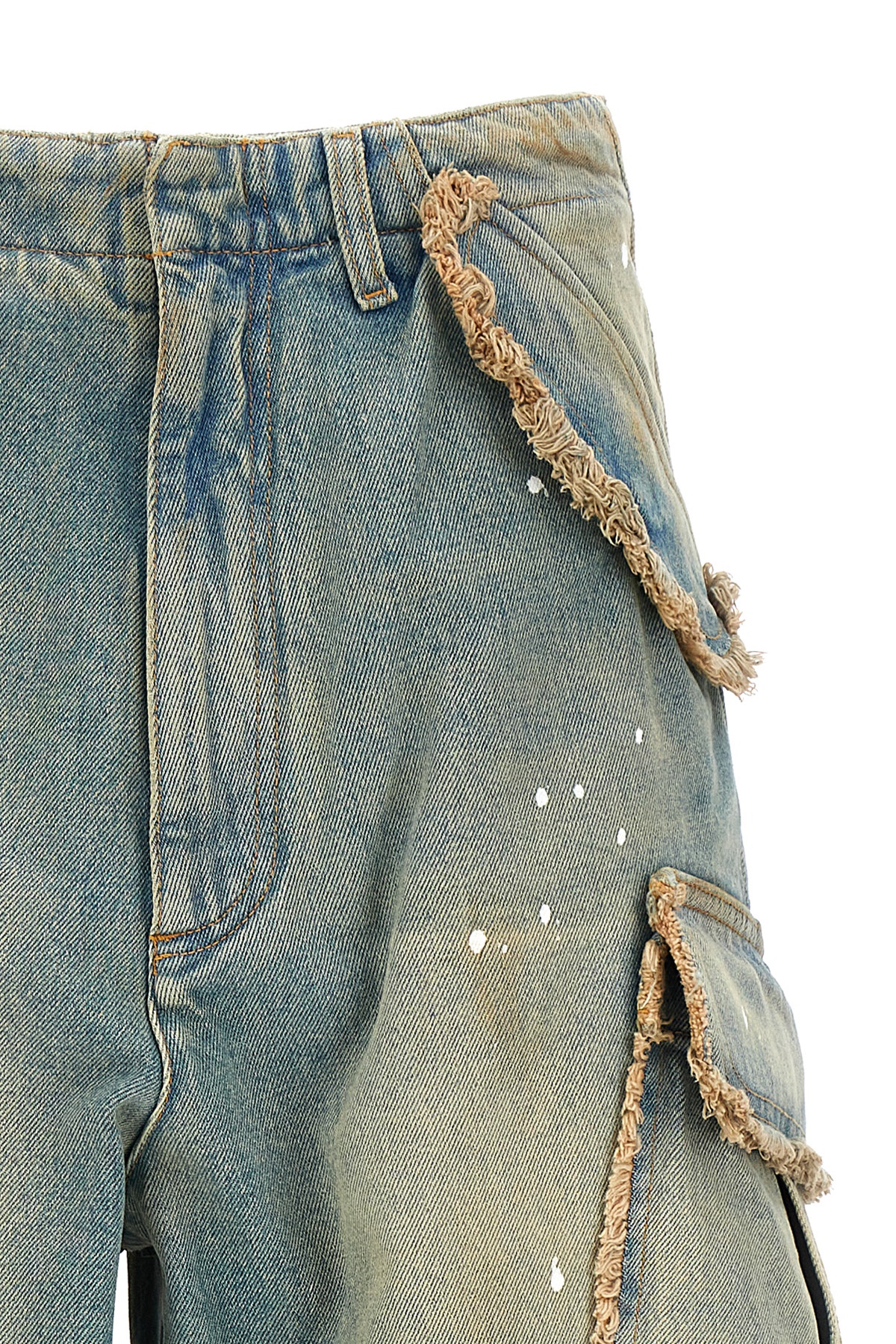 Vivi' cotton denim jeans with frayed details and paint stains, zip and hook closure, drawstring at the waist, multi pockets.