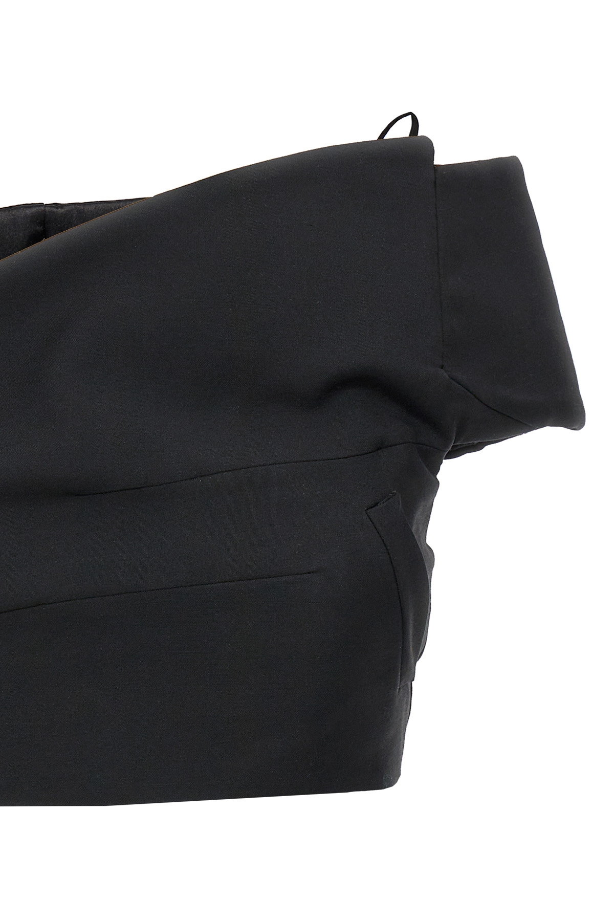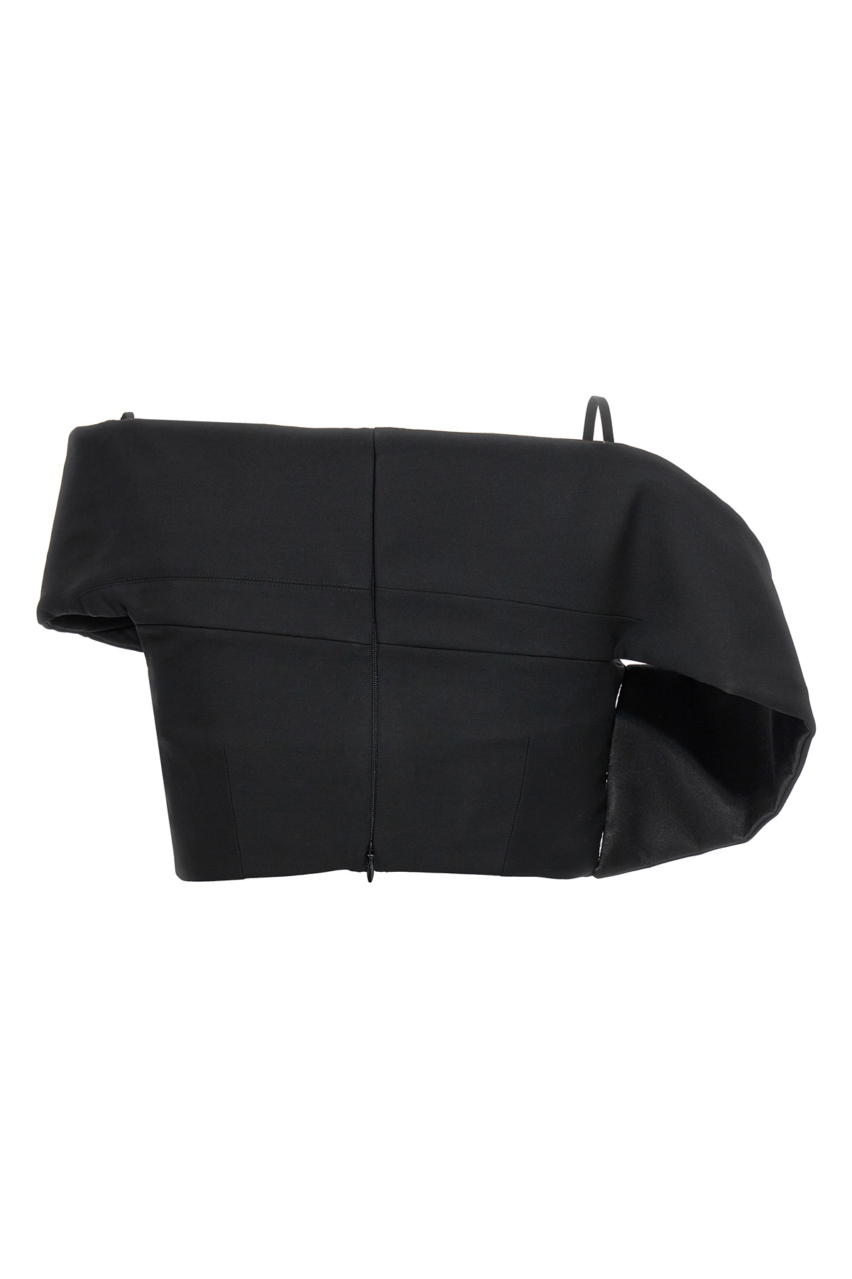 'Crop Lapel Corset' wool cropped top with back zip closure.