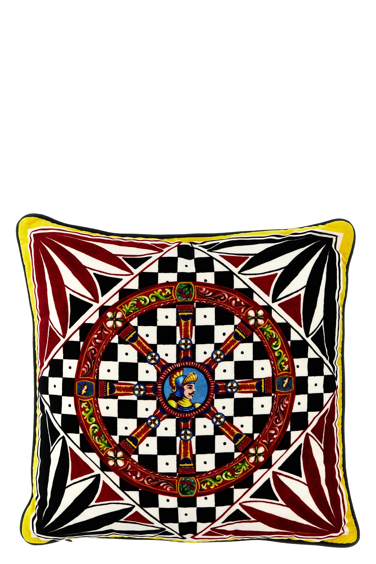 Small velvet cushion with 'Carretto Siciliano' print. Removable cover, zip closure.