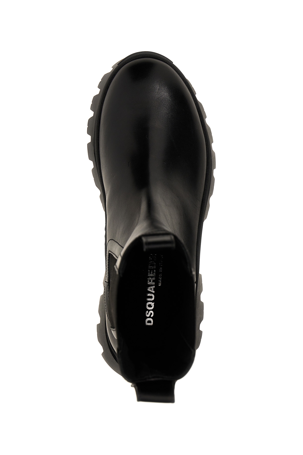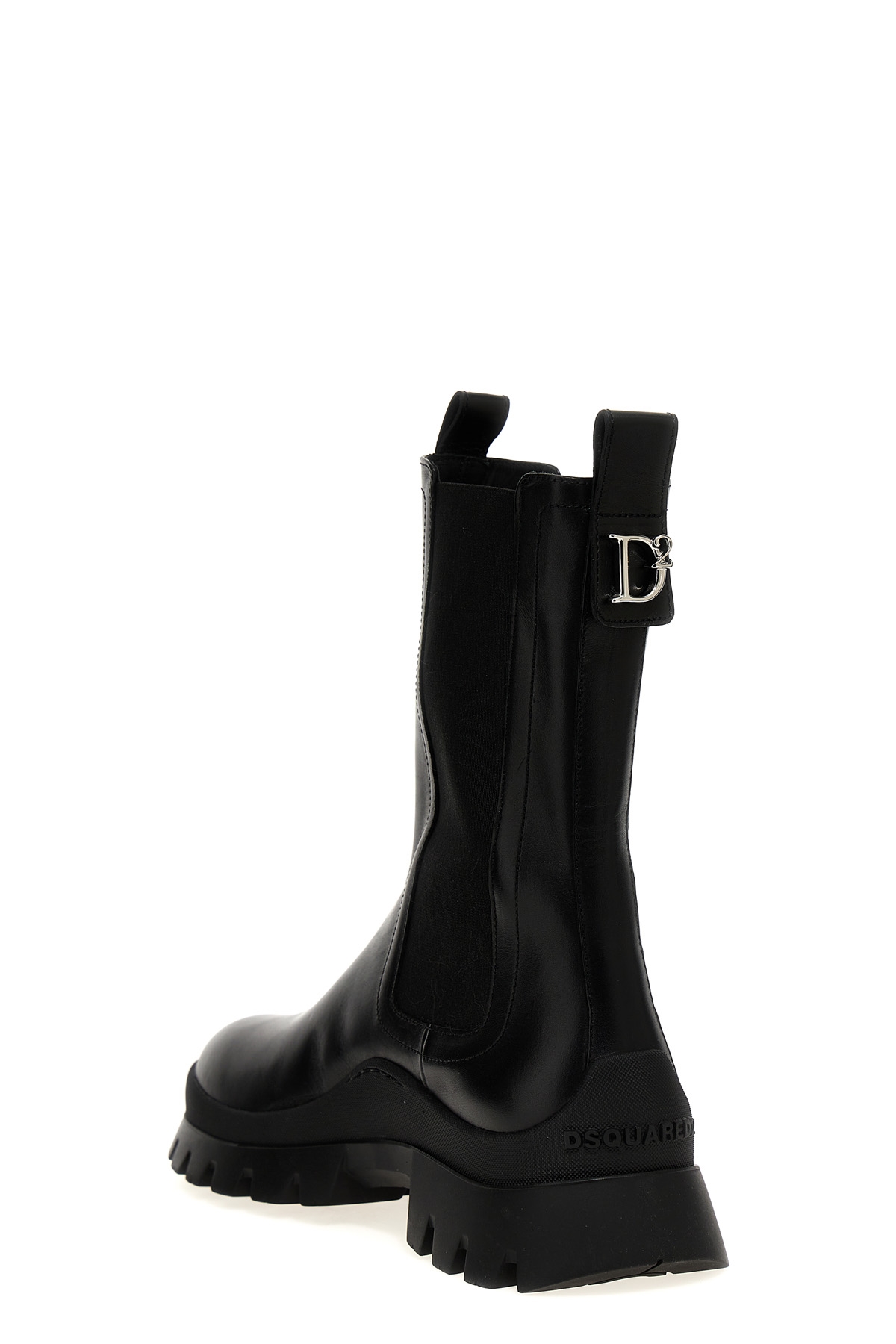 'D2 Statement' leather ankle boots with back metal logo applique, elastic ankle strap, rubber sole.