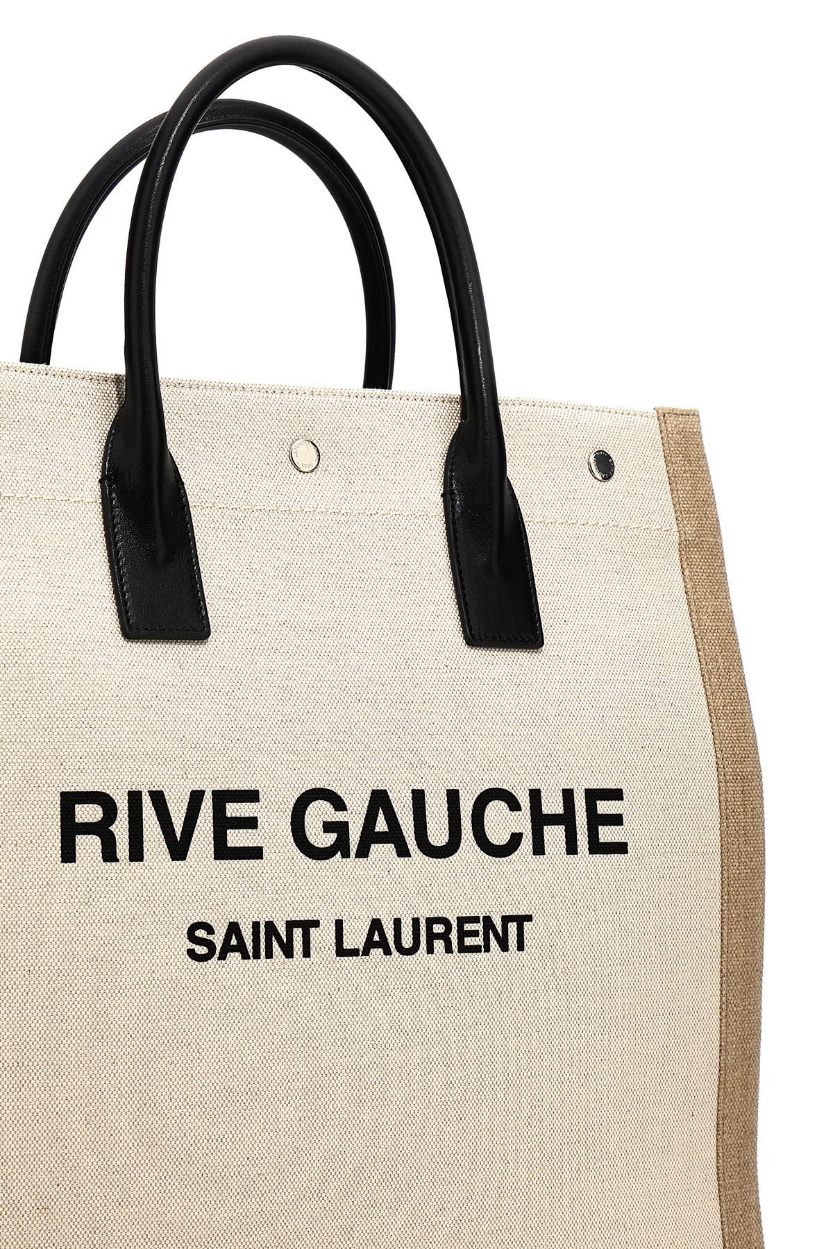 'Rive Gauche North/South' canvas shopping bag with leather details, front logo print, double leather handle, button closure.