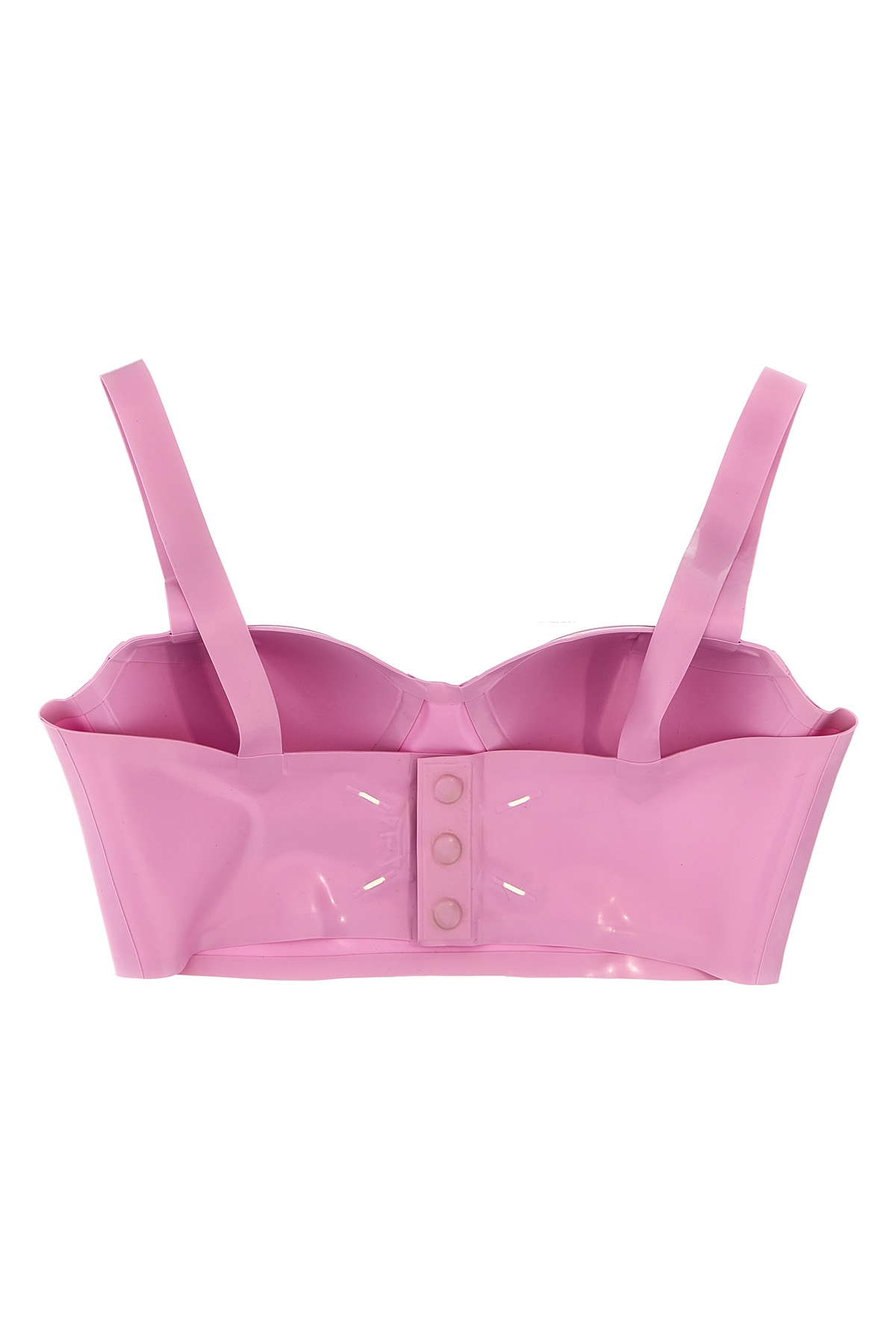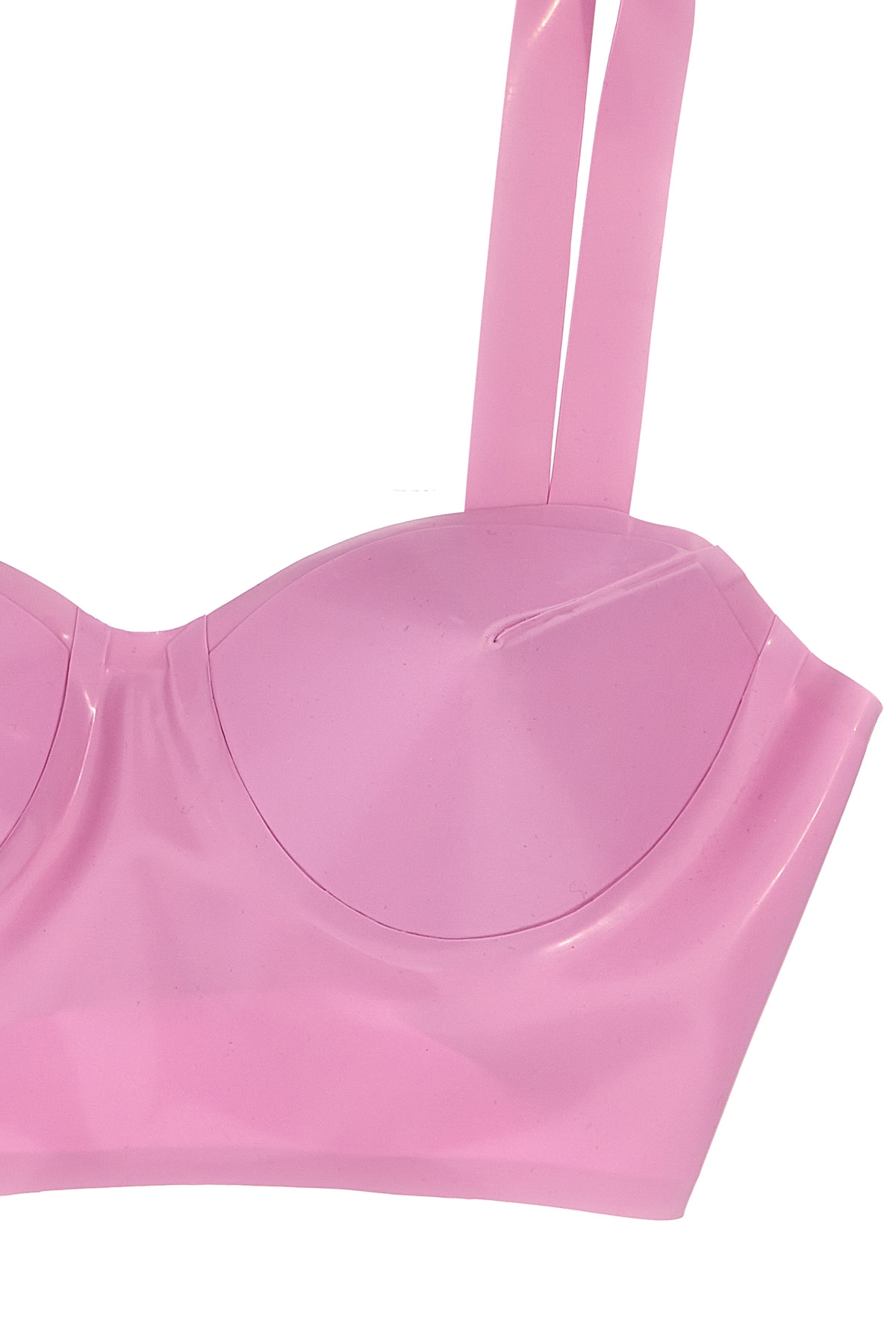 Reggiseno in latex con coppe a punta, chiusura bottoni posteriore. PER MOTIVI IGENICI QUESTO CAPO NON PUO ESSERE RESO.
