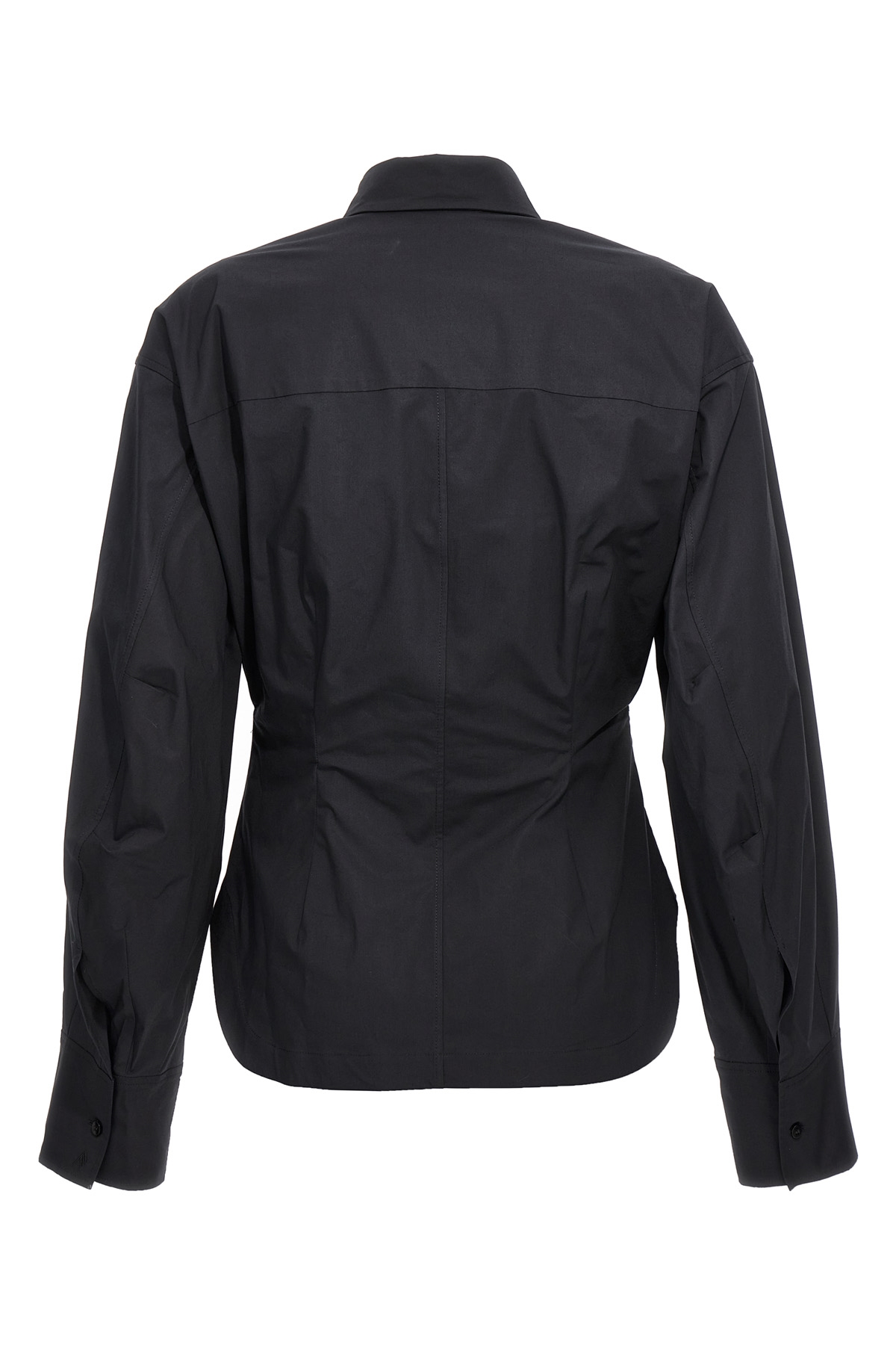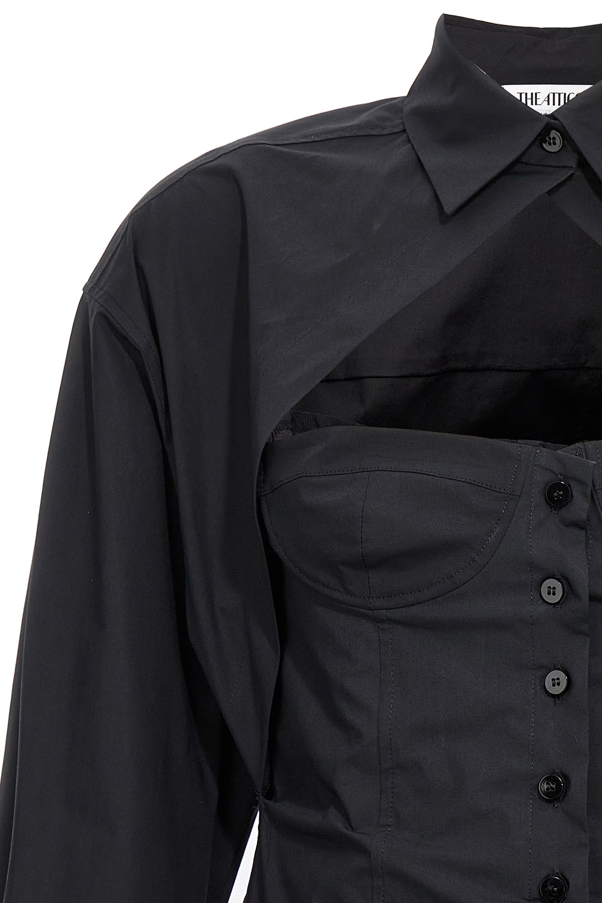 Bustier' cotton shirt with button closure, long and wide cuffed sleeves.