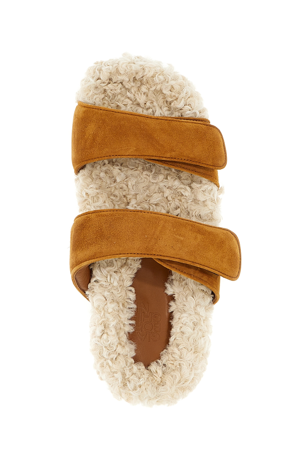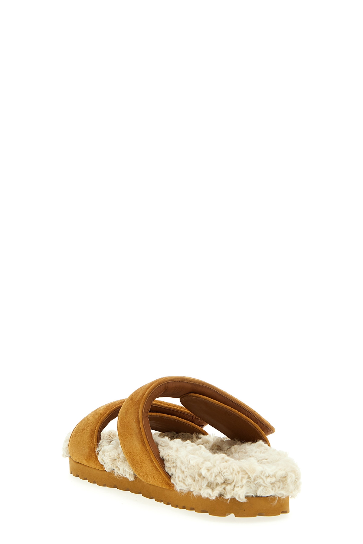 Sandalo 'Alvine' in suede con fodera in shearling, bande regolabili con velcro.