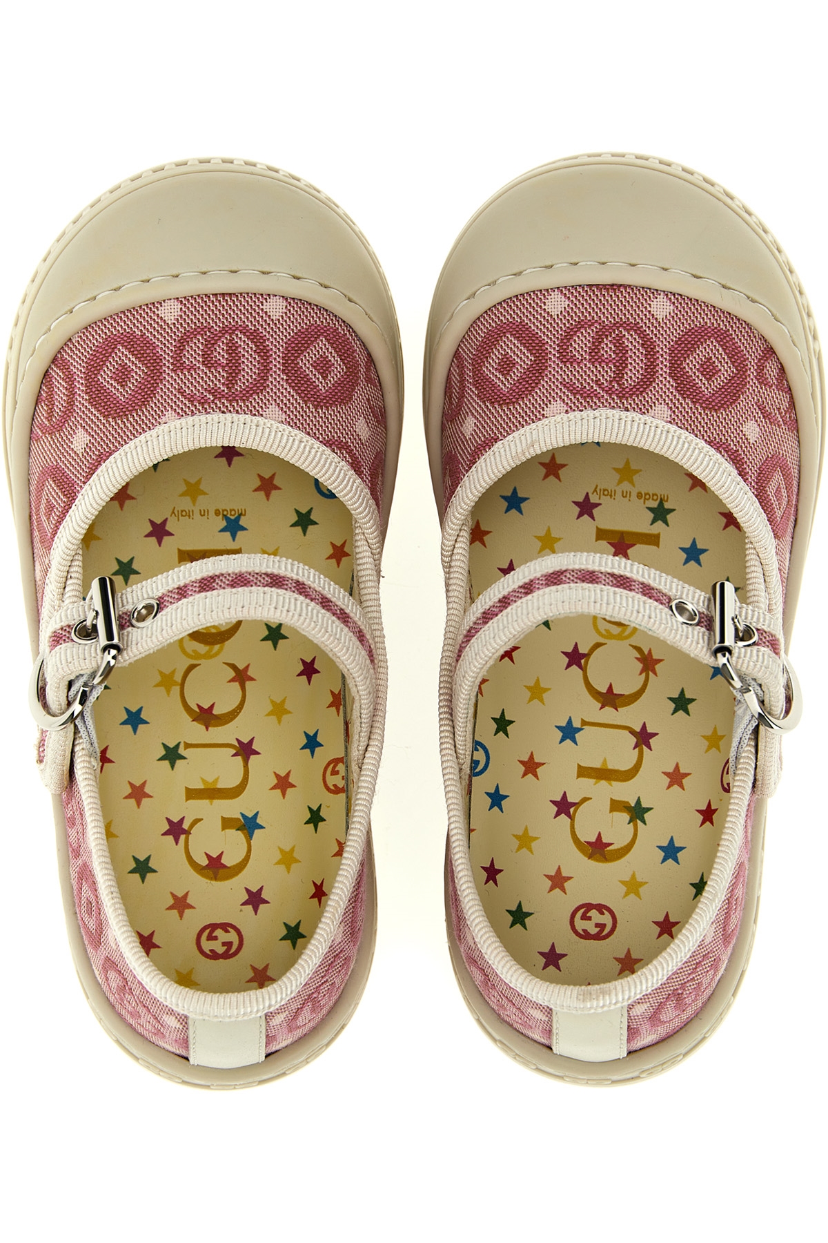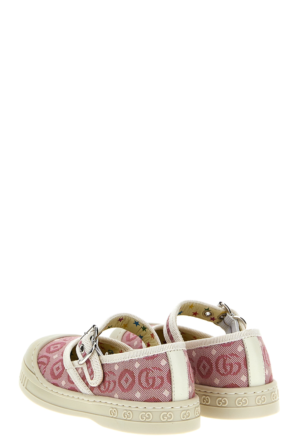 JULIAN KIDS Ballerina in cotone con motivo geometrico 'Doppia G', dettagli gros grain, cinturino regolabile, suola in gomma.
