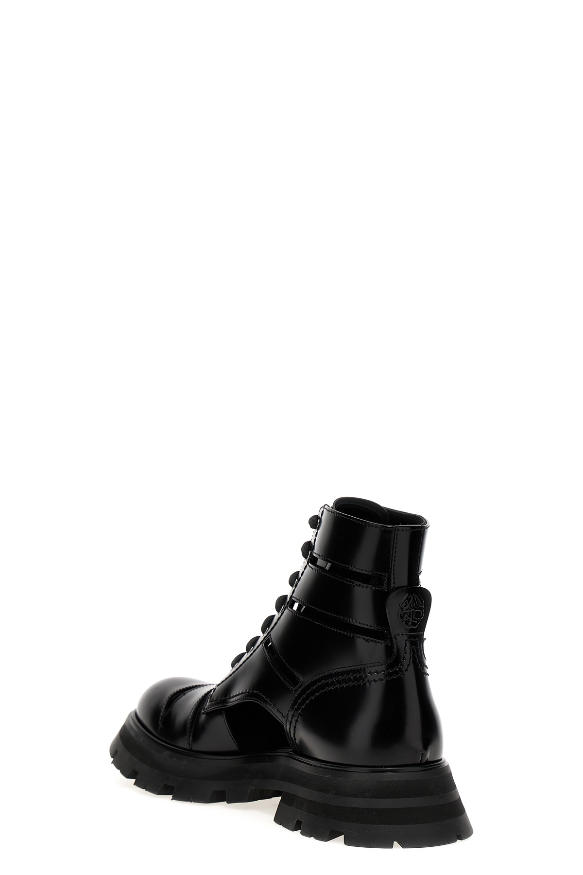 Stivaletto 'Wander' in pelle con dettagli cut out, chiusura lacci, suola in gomma oversize dentellata.