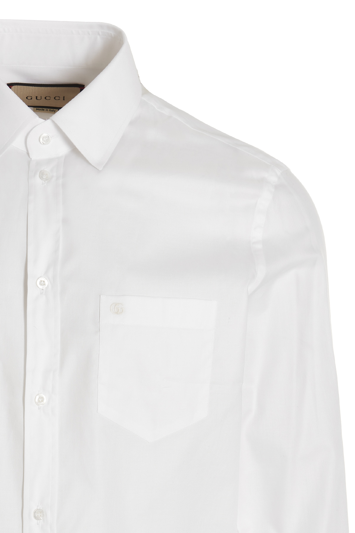 Cotton shirt with pocket with embroidered logo, a button closure, and long cuffed sleeves.