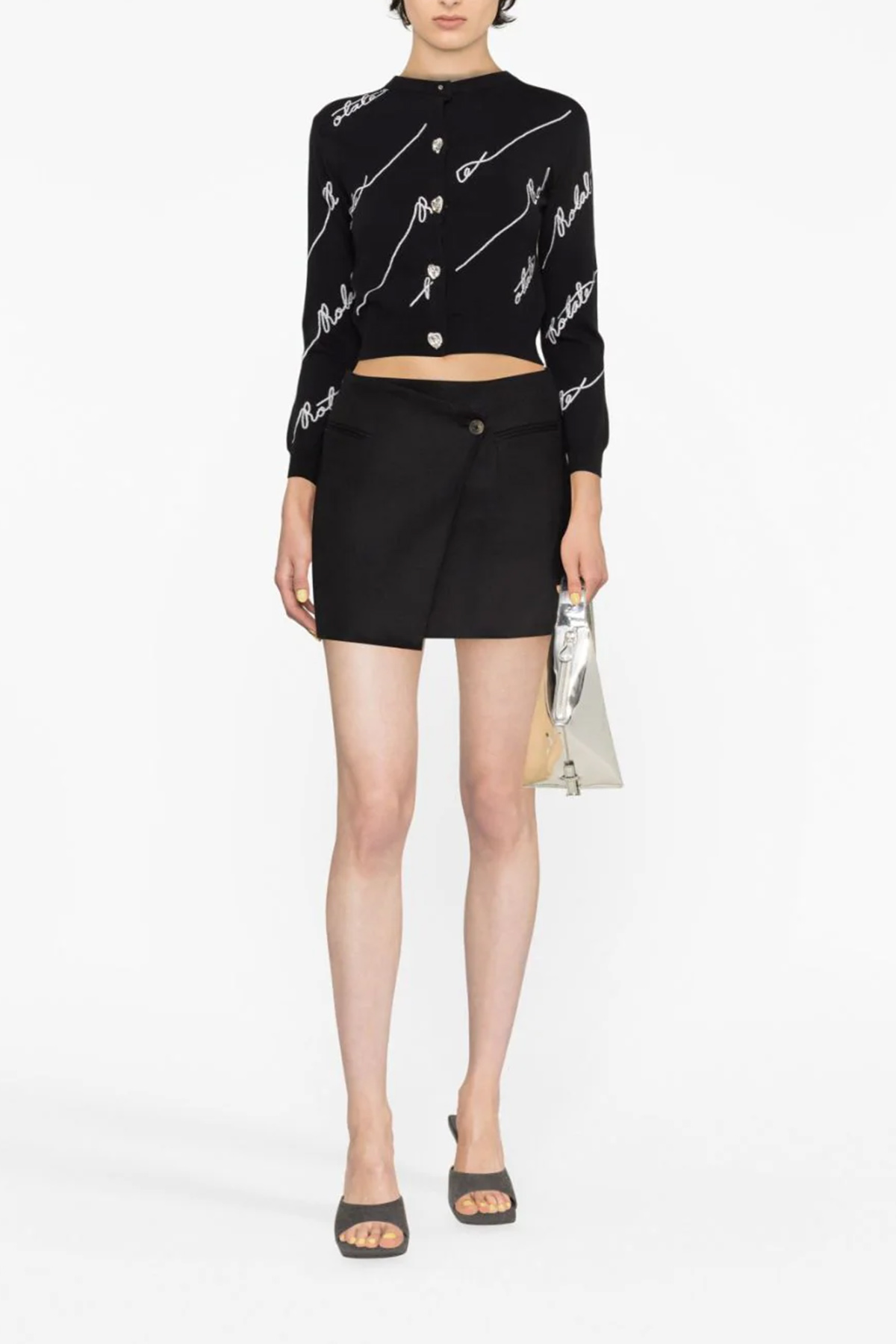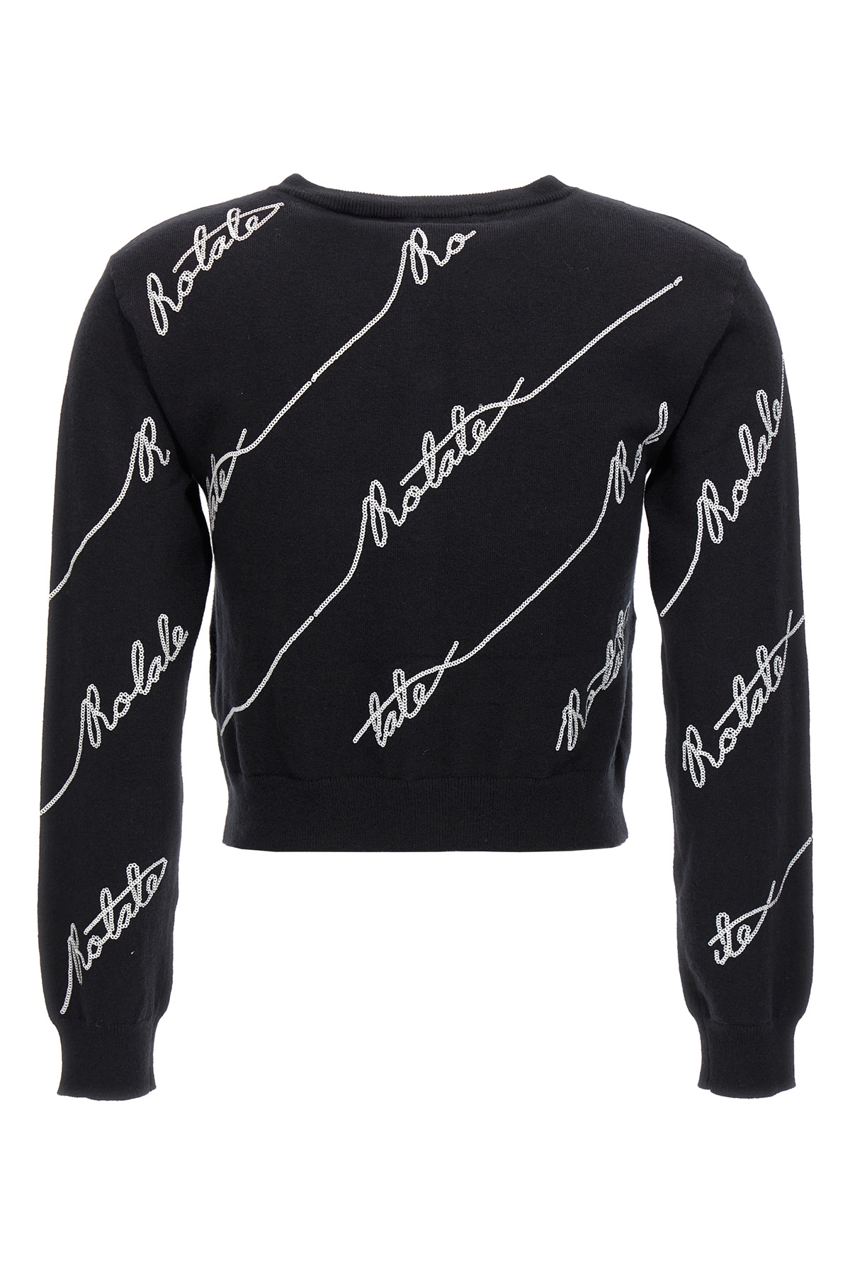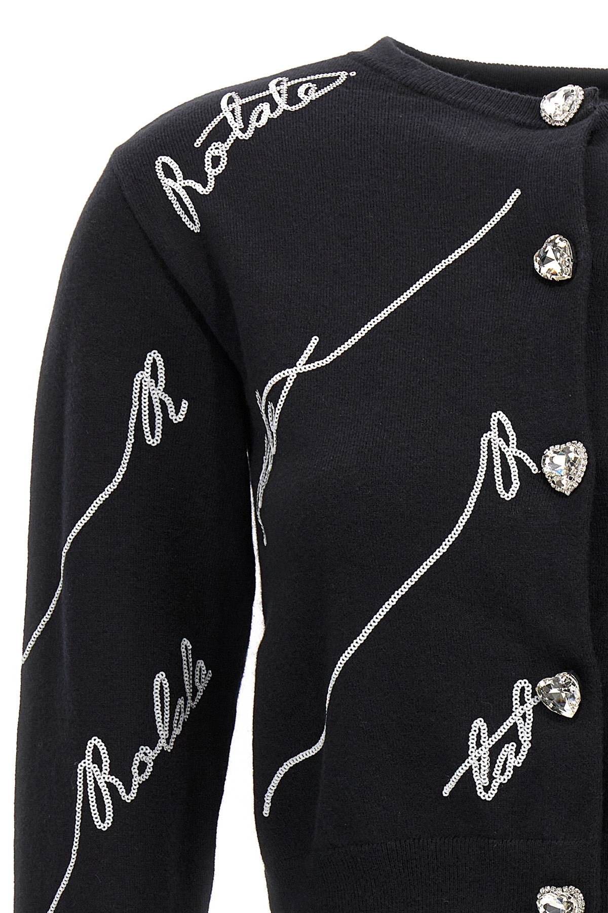 Cardigan 'Sequin Logo' in misto cotone con logo paillettes, girocollo, manica lunga con polsino, chiusura con bottoni gioiello. JULIAN SUSTAINABLE: Prodotto realizzato con cotone organico.