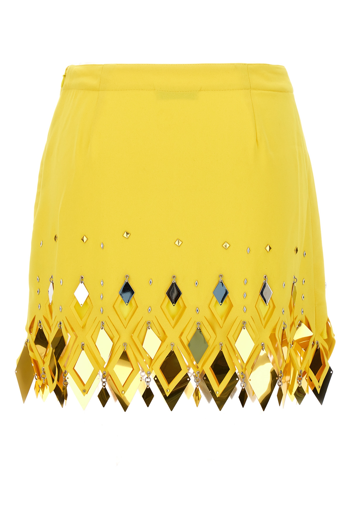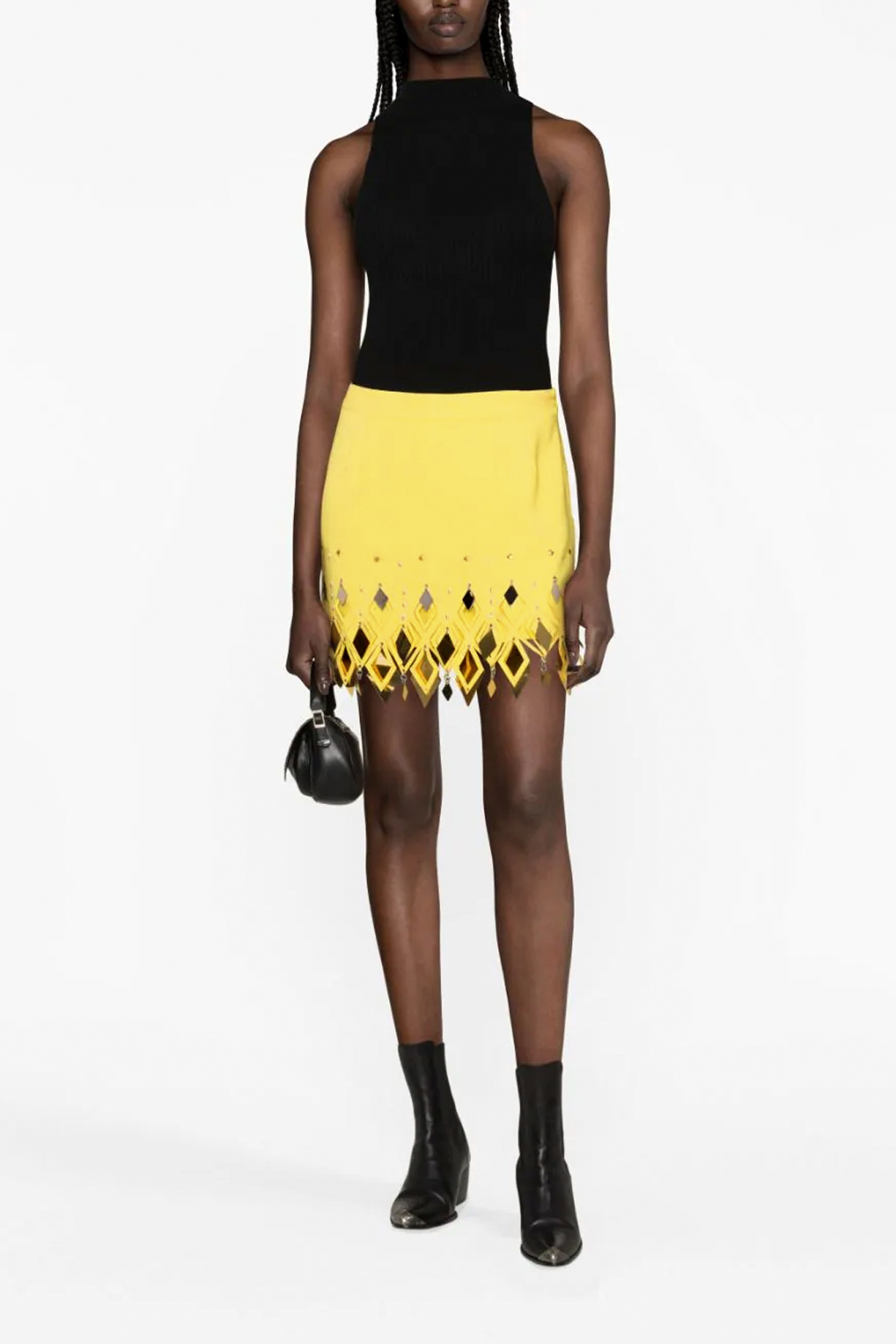 Skirt with diamond-shaped sequin application on the bottom hem, a side zip closure.