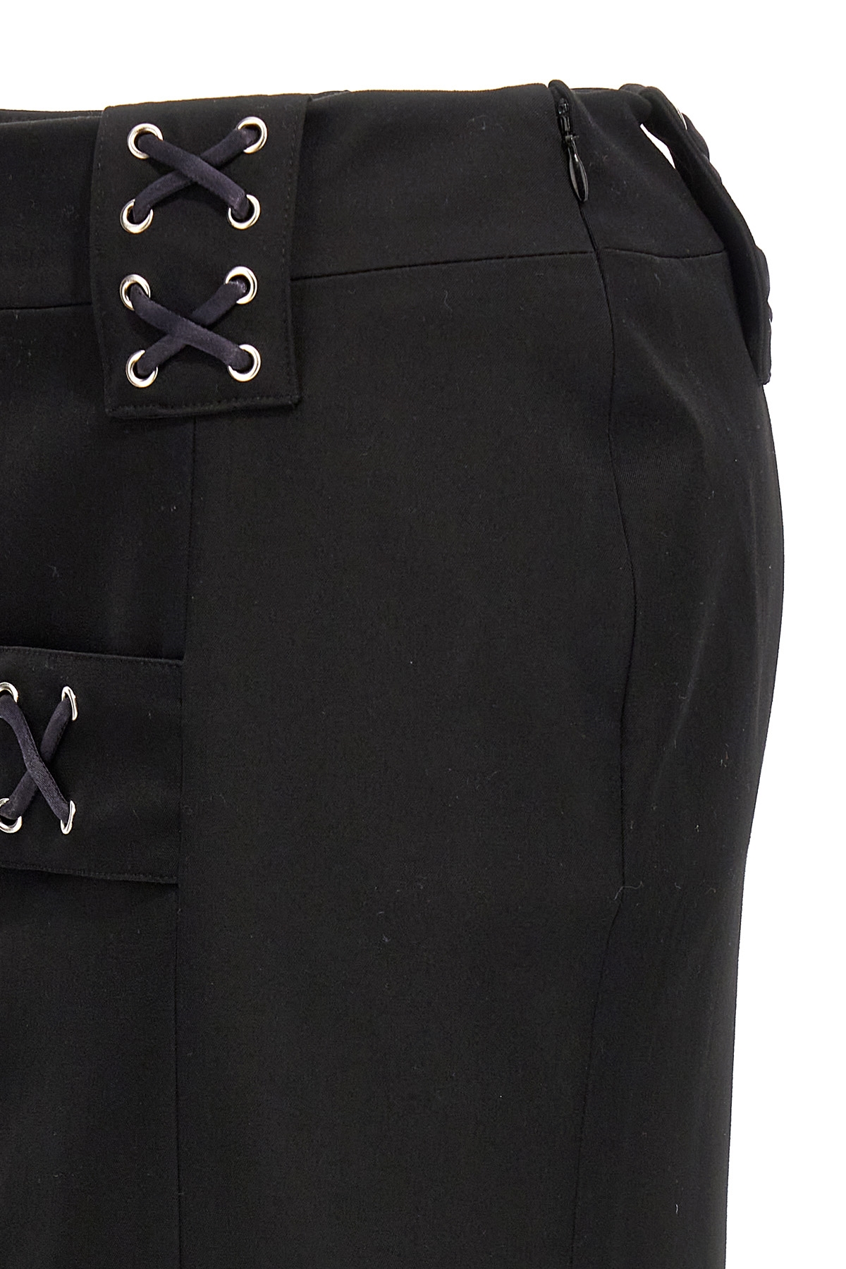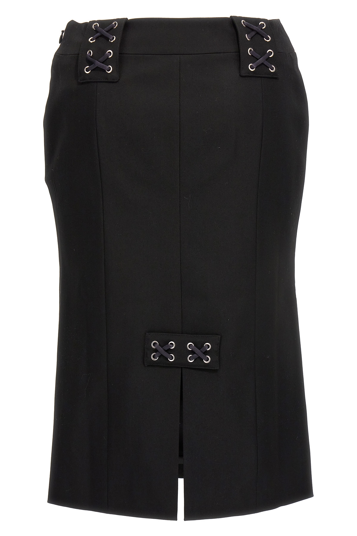 Gonna in misto lana con dettaglio lacci, chiusura zip laterale, spacchetto posteriore e spacchetti frontali.