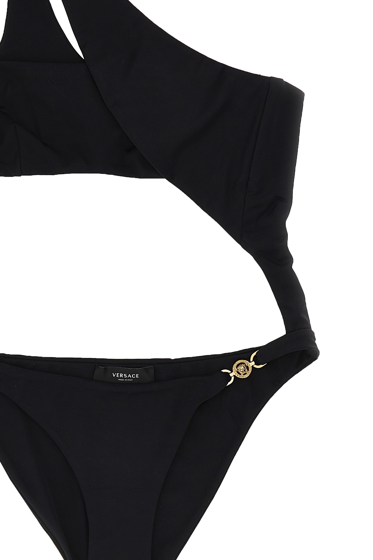 Stretch fabric one-piece swimsuit featuring cut out details and 'Medusa' metal details.