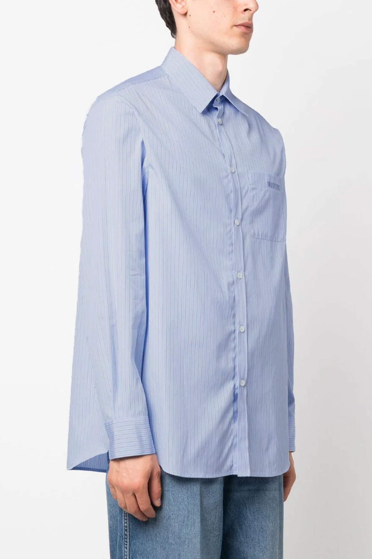 Striped cotton shirt, with front pocket with logo embroidery, a button closure, and long cuffed sleeves.