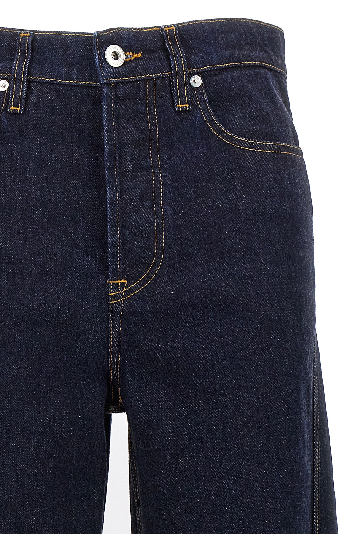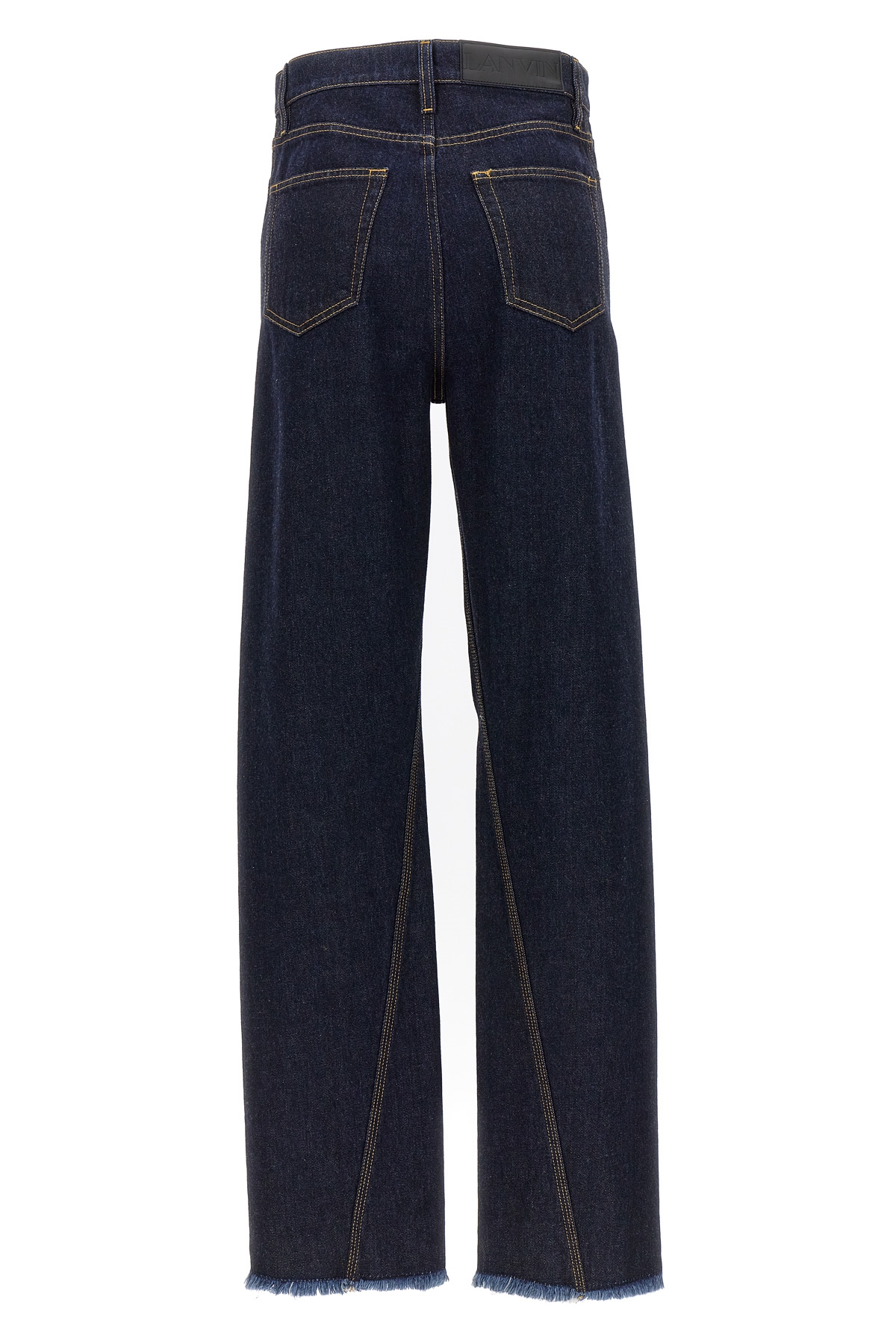 Twisted jeans in cotton denim jeans with button closure, five pockets, and frayed hem.