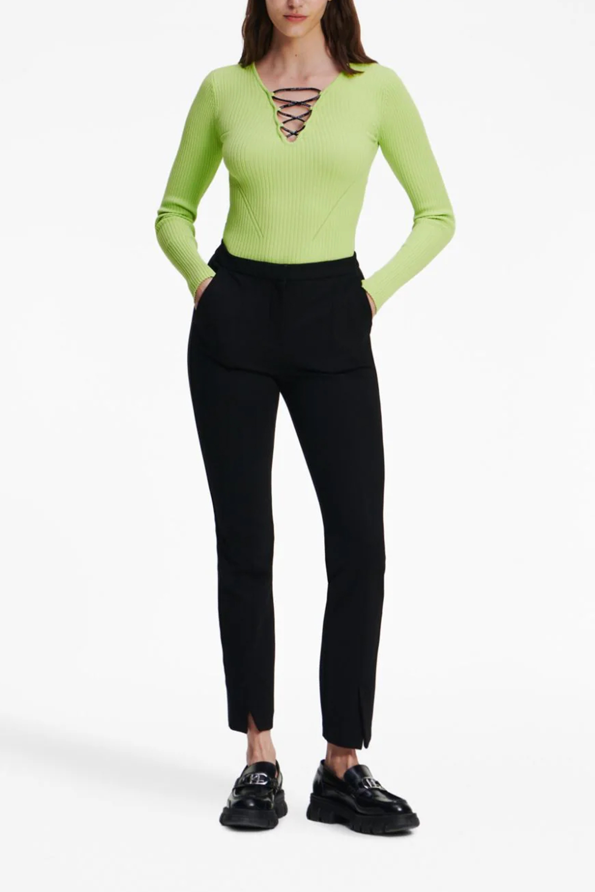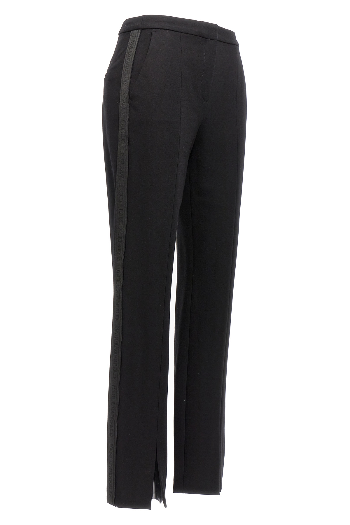 Punto' stretch fabric pants with zip and hook-and-over closure, pockets and side bands with logo.