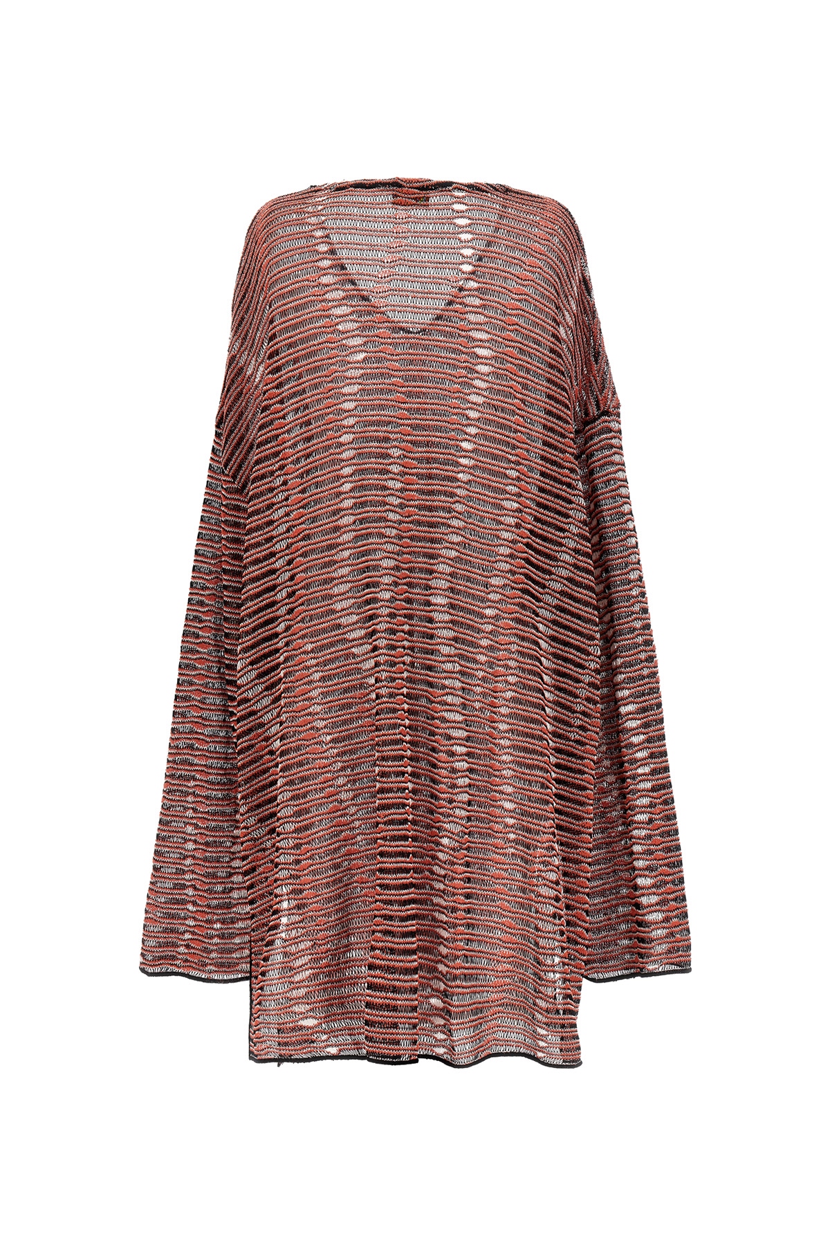 Cotton sweater with all over 'Wave Jacquard' pattern, V-neck, long sleeves and side splits.