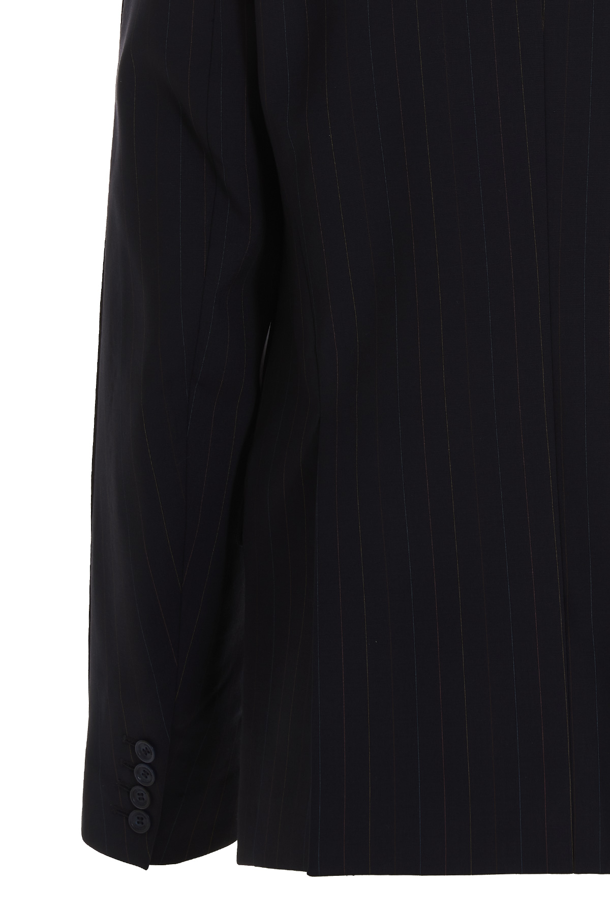 Tailored stretch virgin wool blazer jacket with multicolor lapels, double breast style with flap pockets and peak lapels, contrast lining and a double slit at the back.