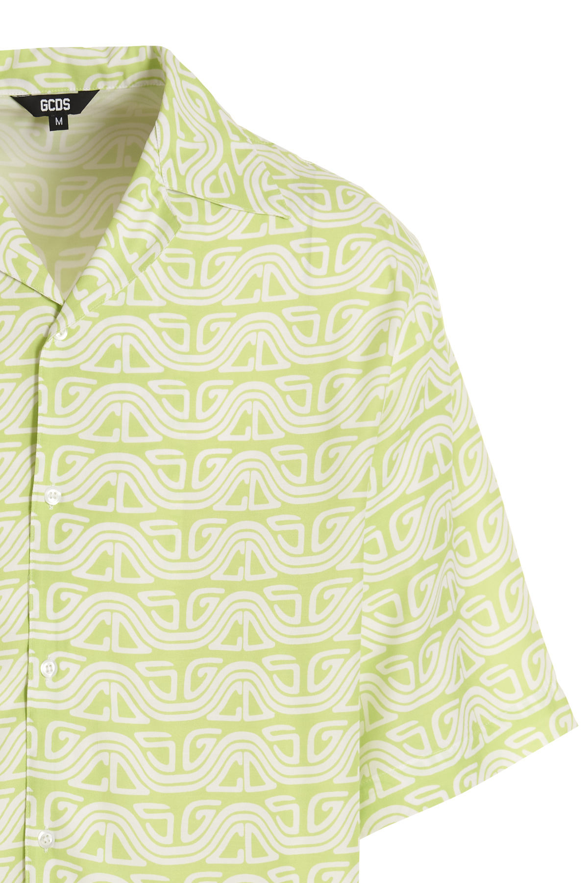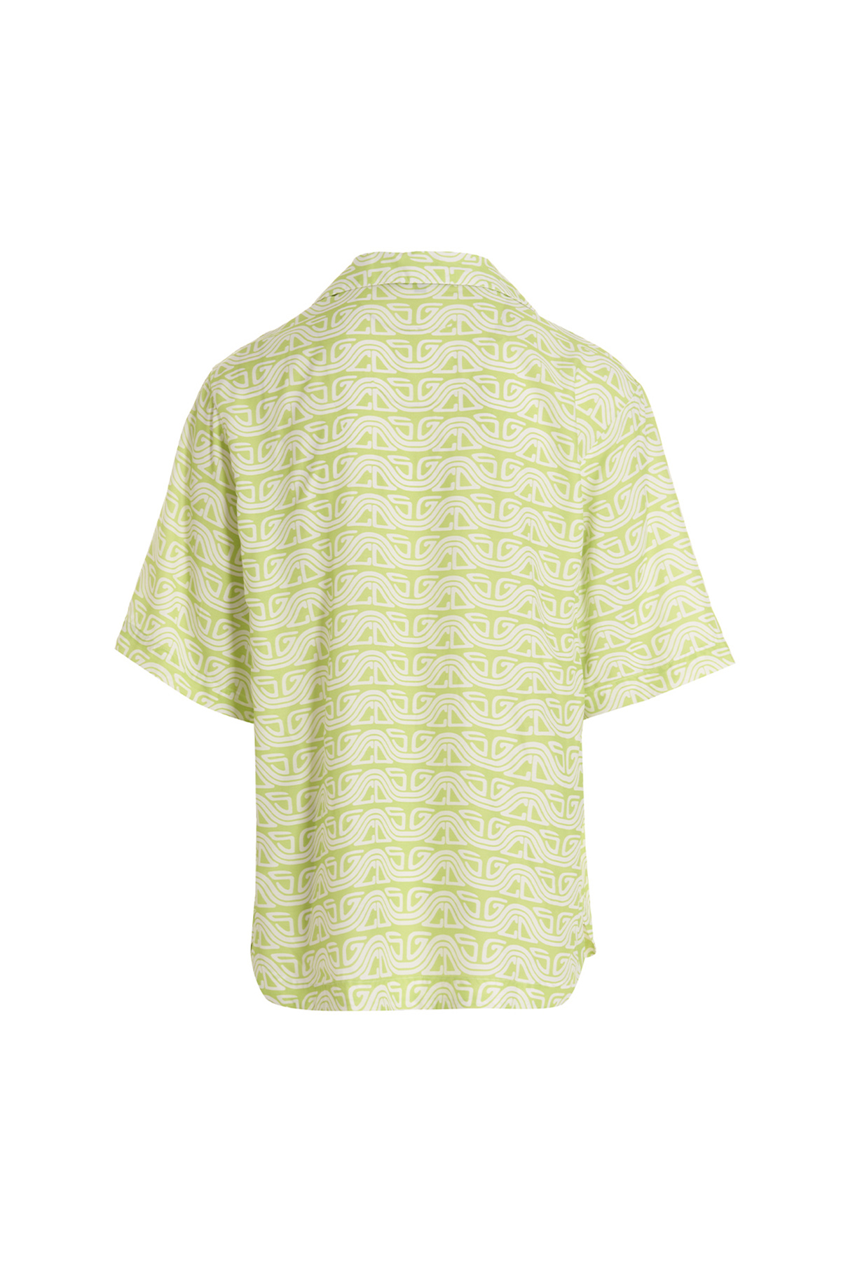 Viscose shirt with all-over 'Waved Logo' print, button closure, short sleeves.