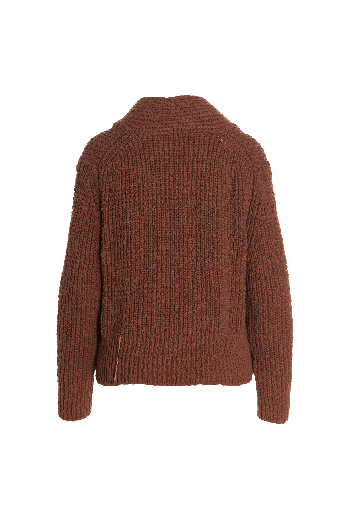 Lola' cotton knit cardigan with V-neck, metal button closure, turquoise detail, long sleeves.