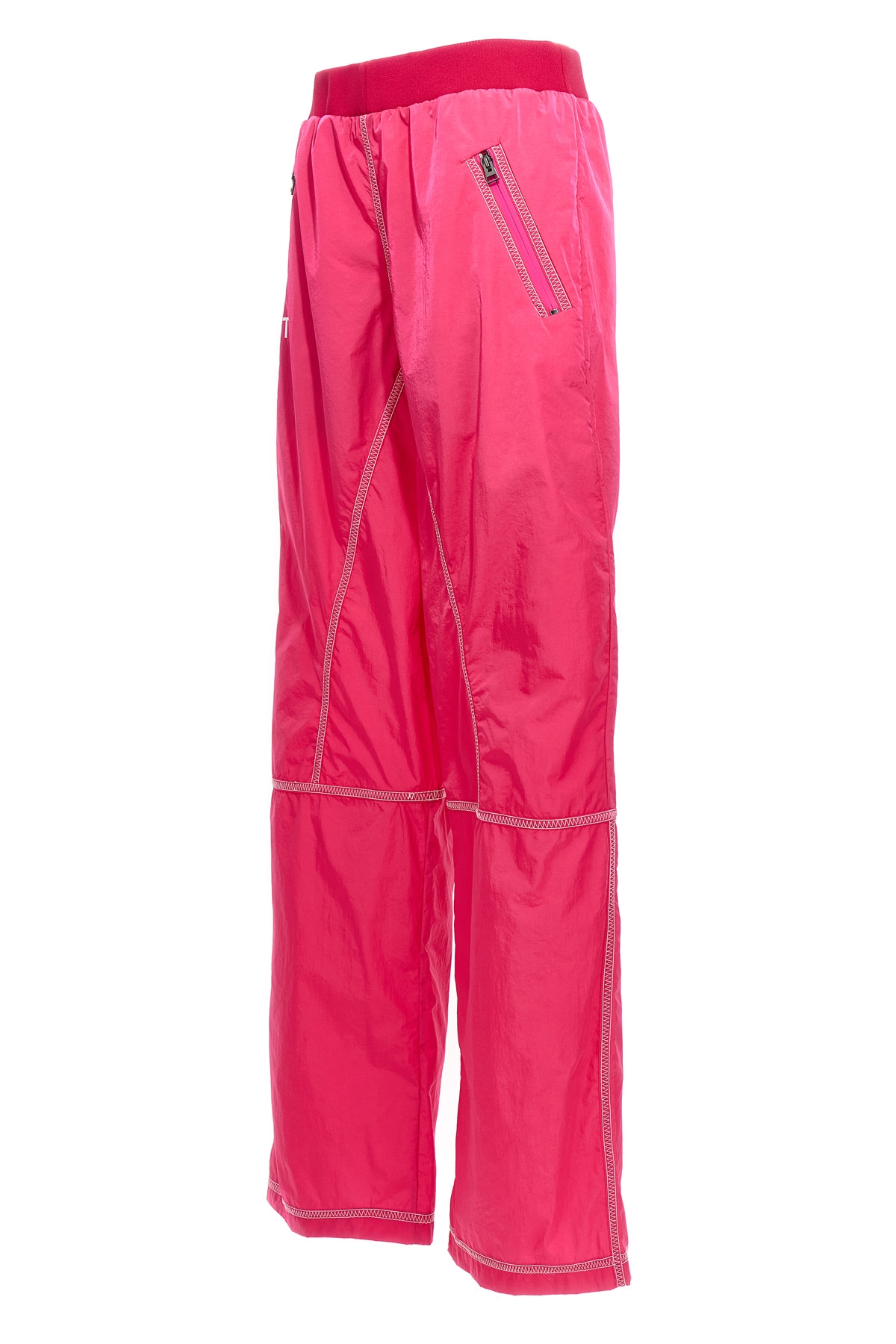 Nylon pants with front logo print, knitted elastic waistband, zipped pockets.