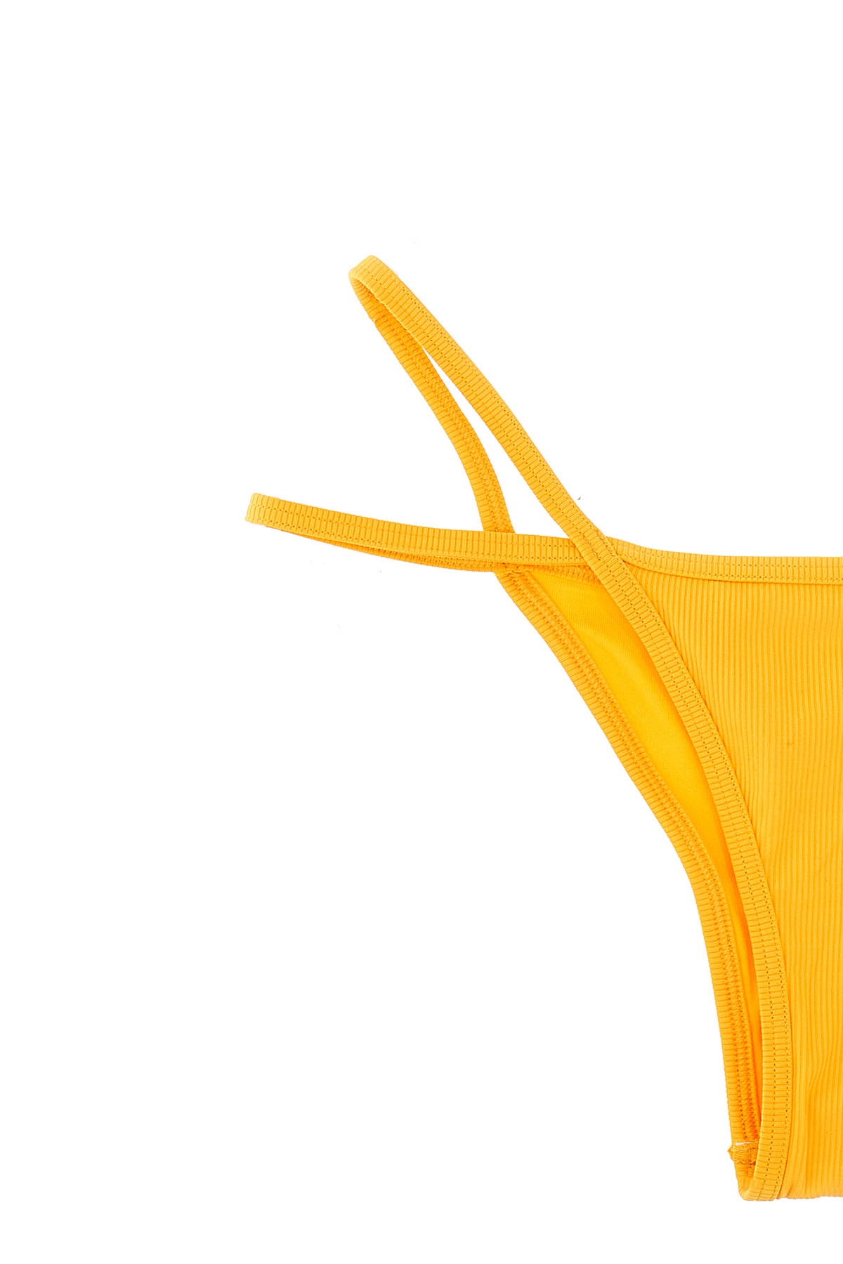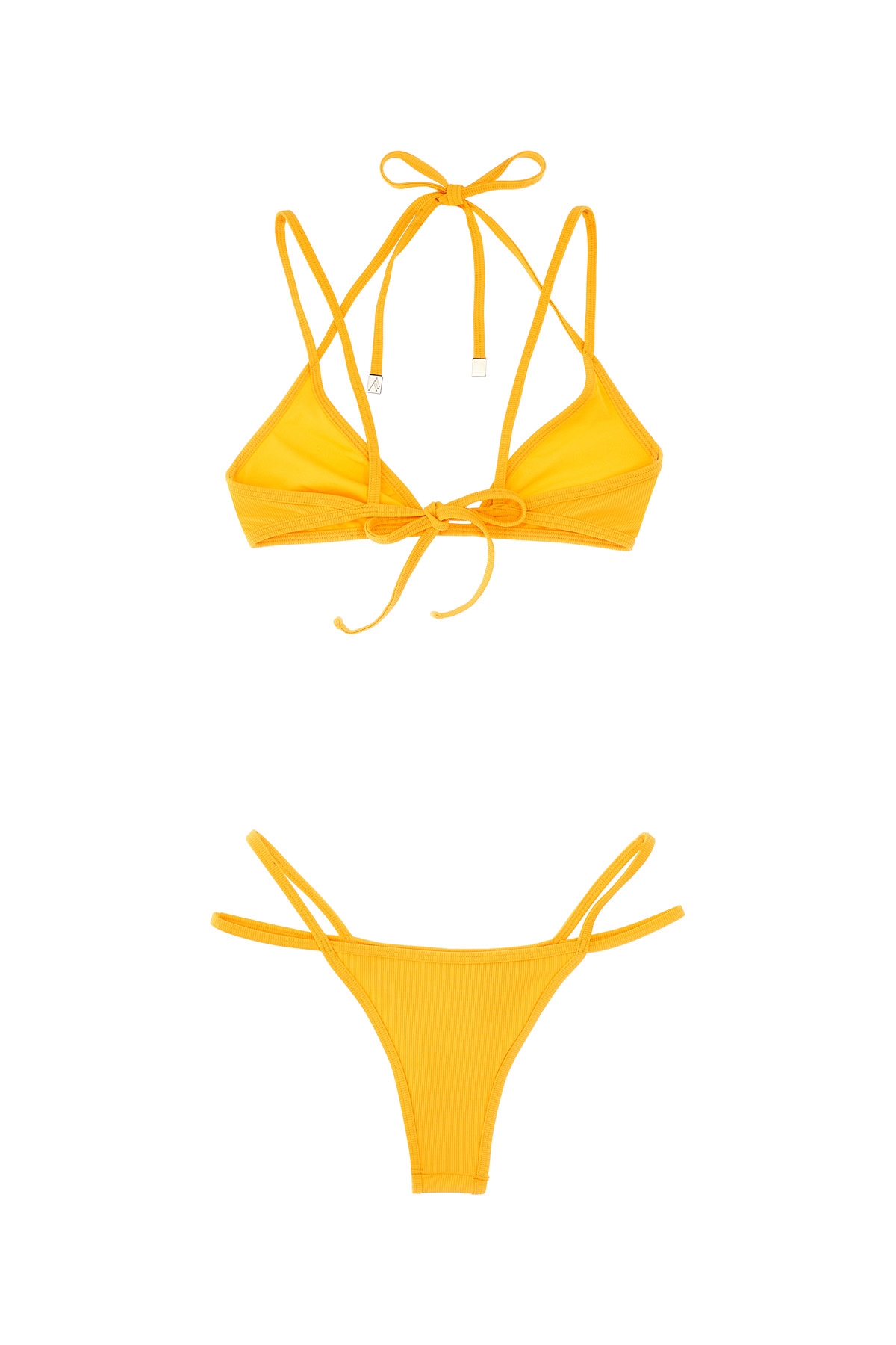 Ribbed lycra bikini with triangle bra, lacing and regular side cut-out briefs.