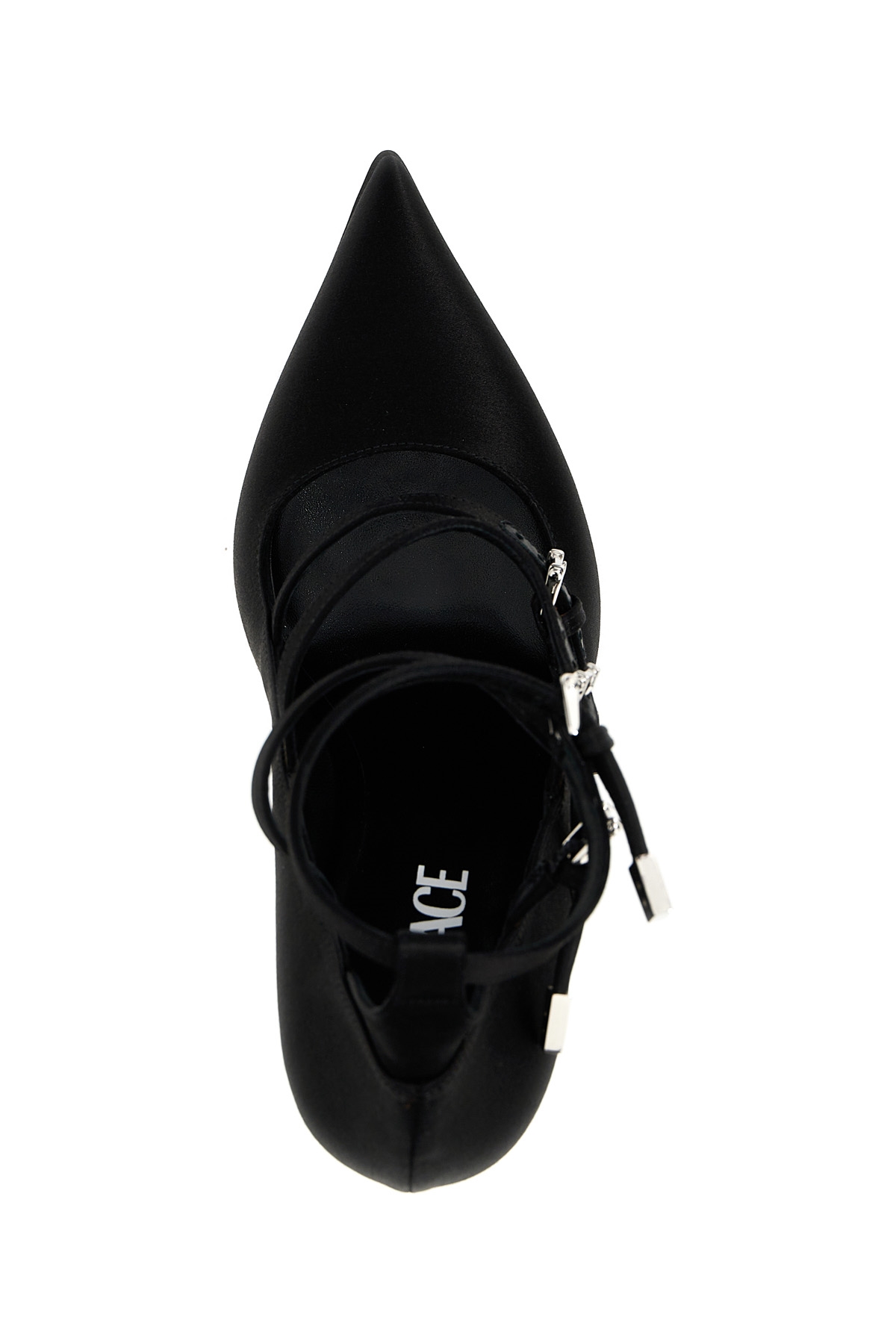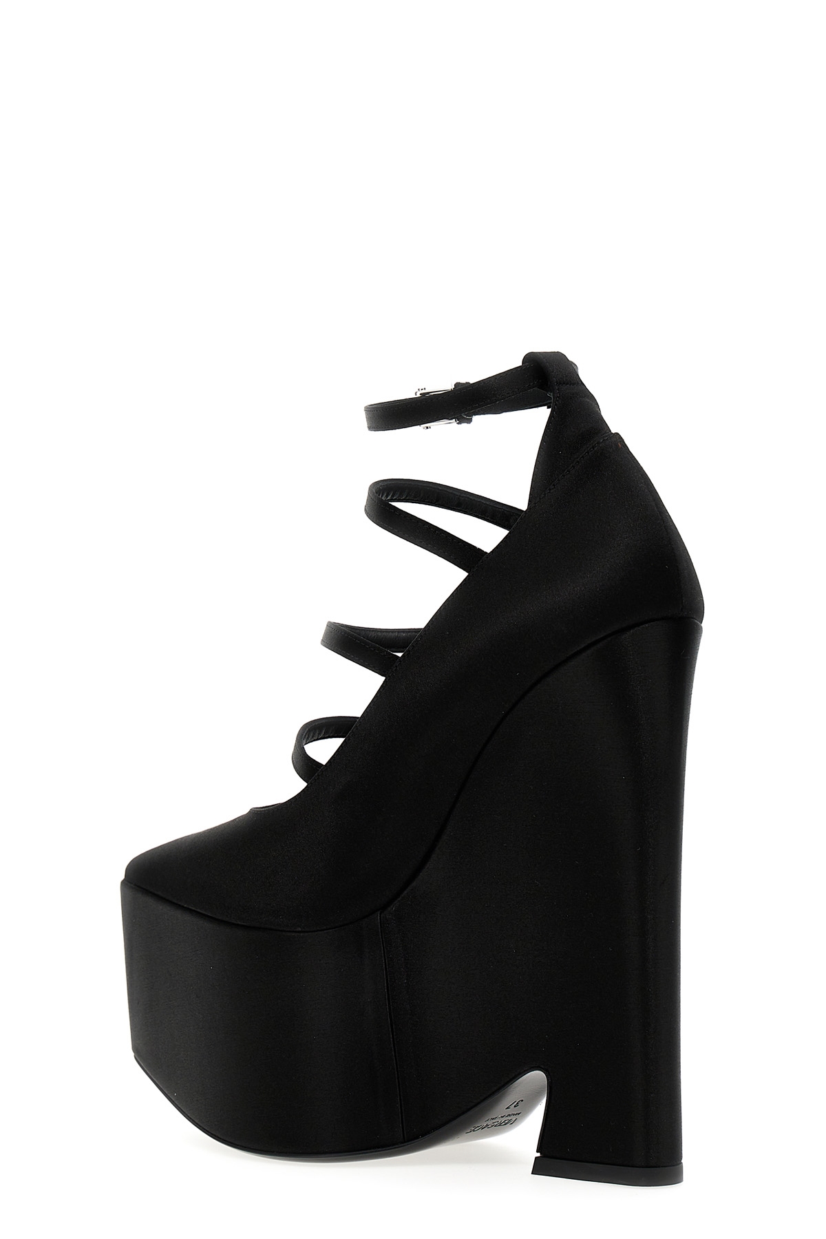 Storm' 'Storm Storm' satin, pointed toe pumps with heel and plateau, V-shaped metal details on the straps with adjustable buckle.