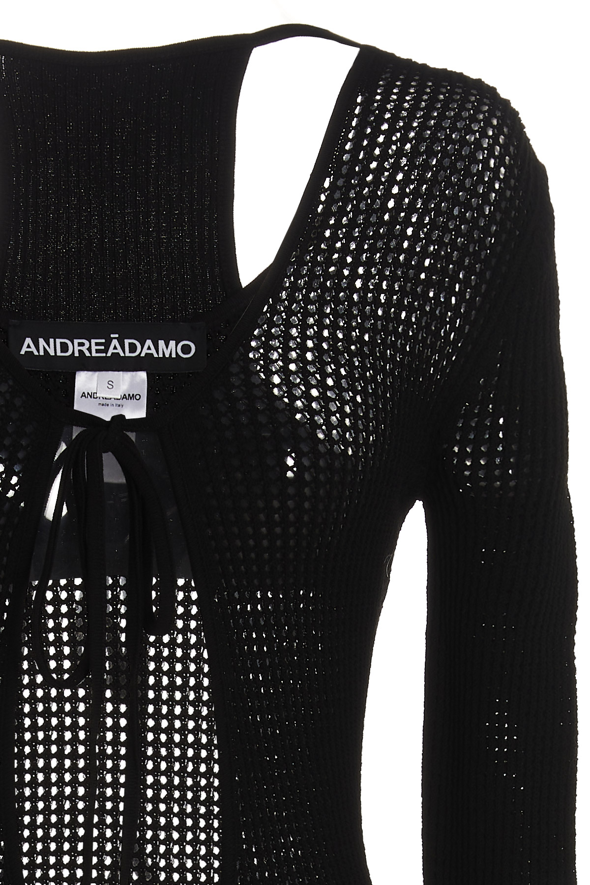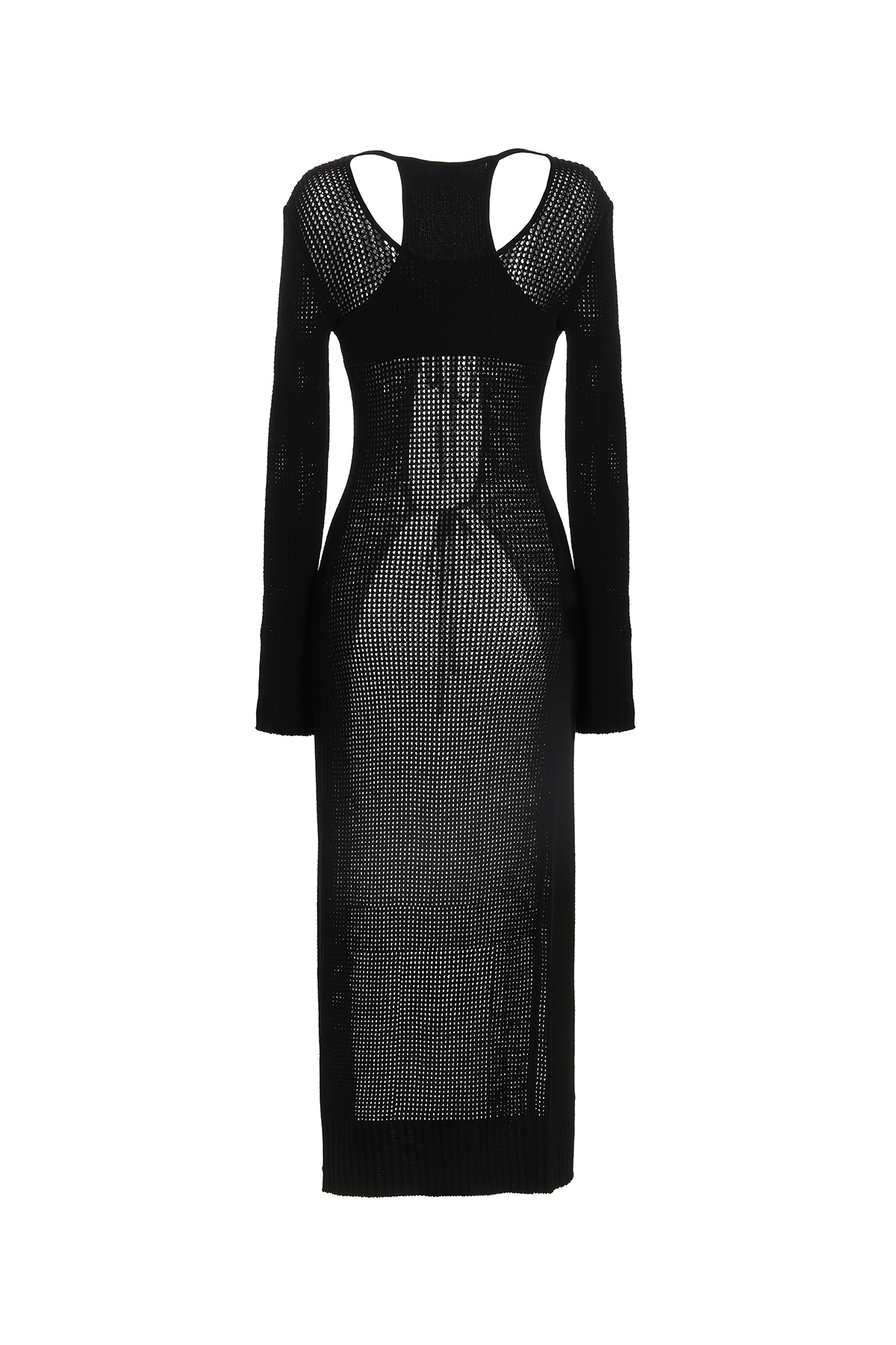 Long openwork knit cardigan with front lacing to tie, long sleeves and cut out details at the back.