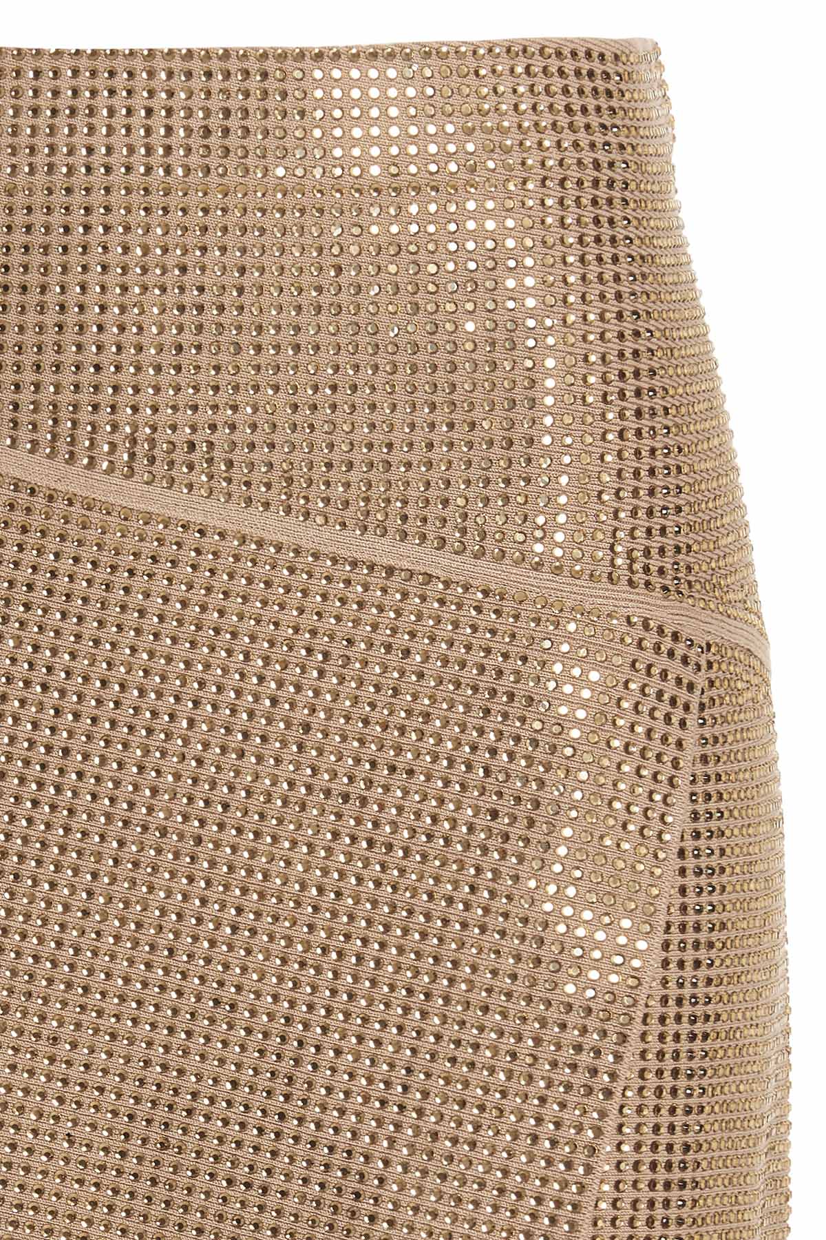 Short knit skirt featuring all over sequins, and an elastic waistband.