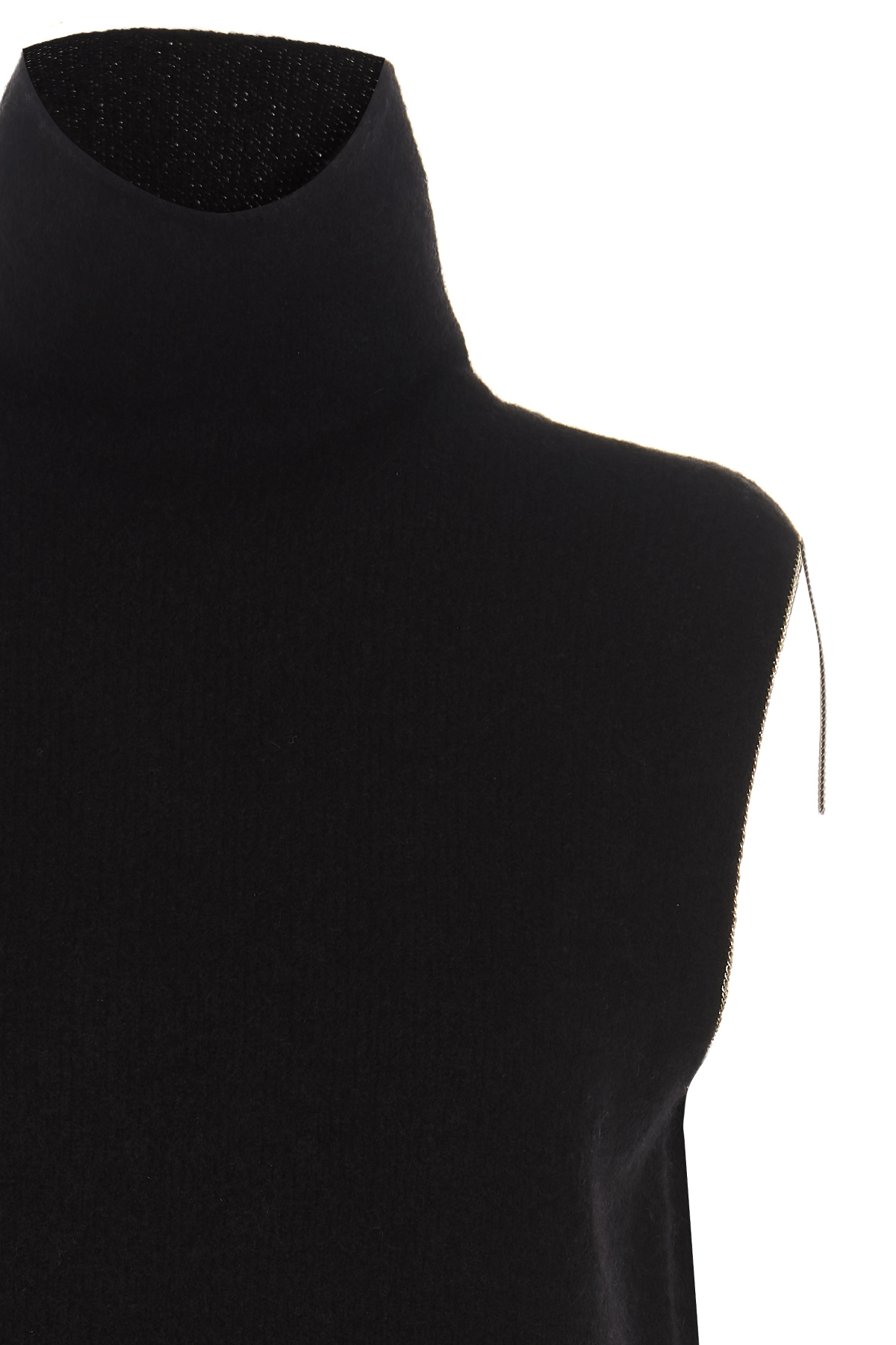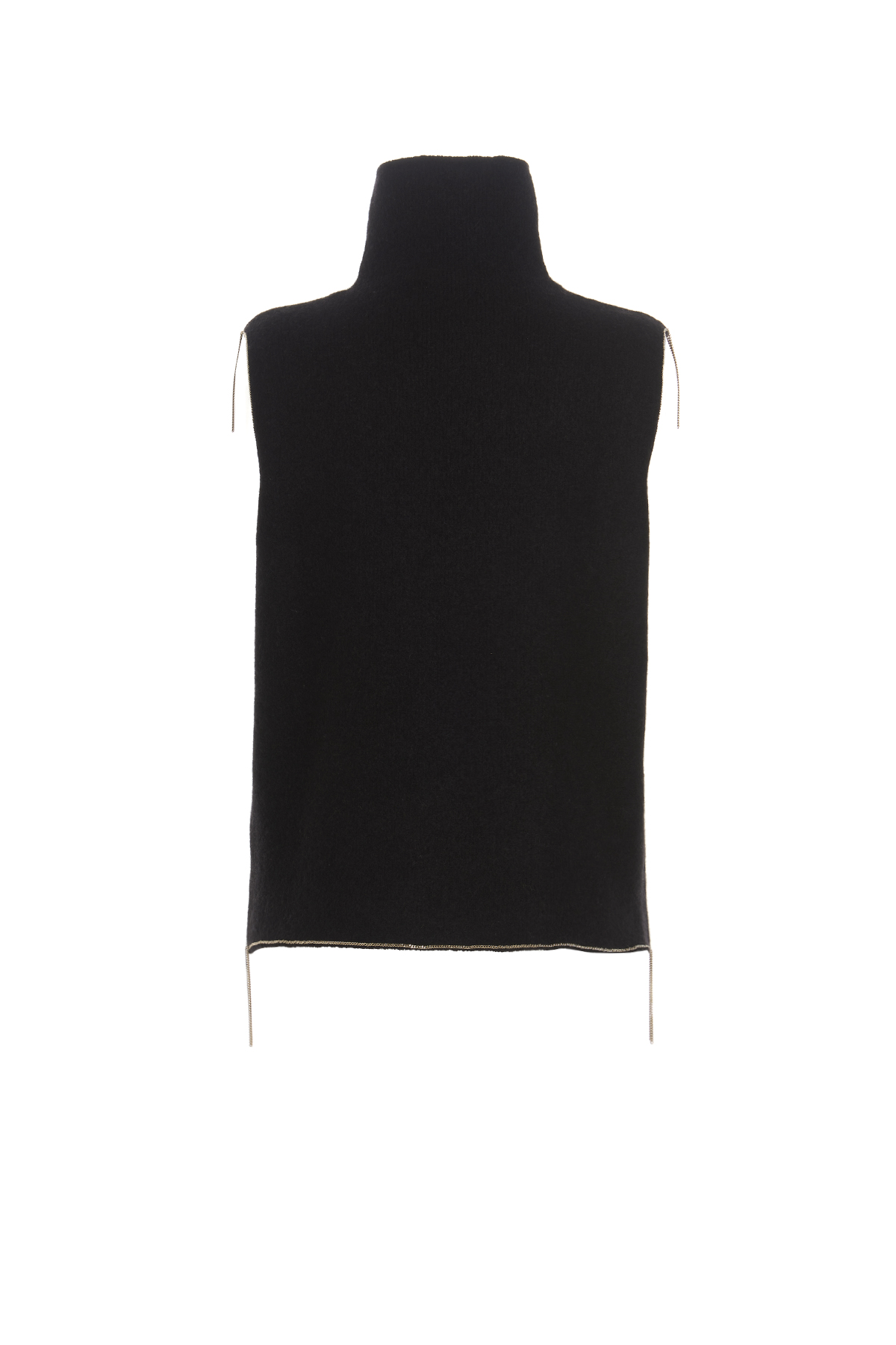 ‘Charlotte' cashmere blend vest with a high collar and chain applique edging.