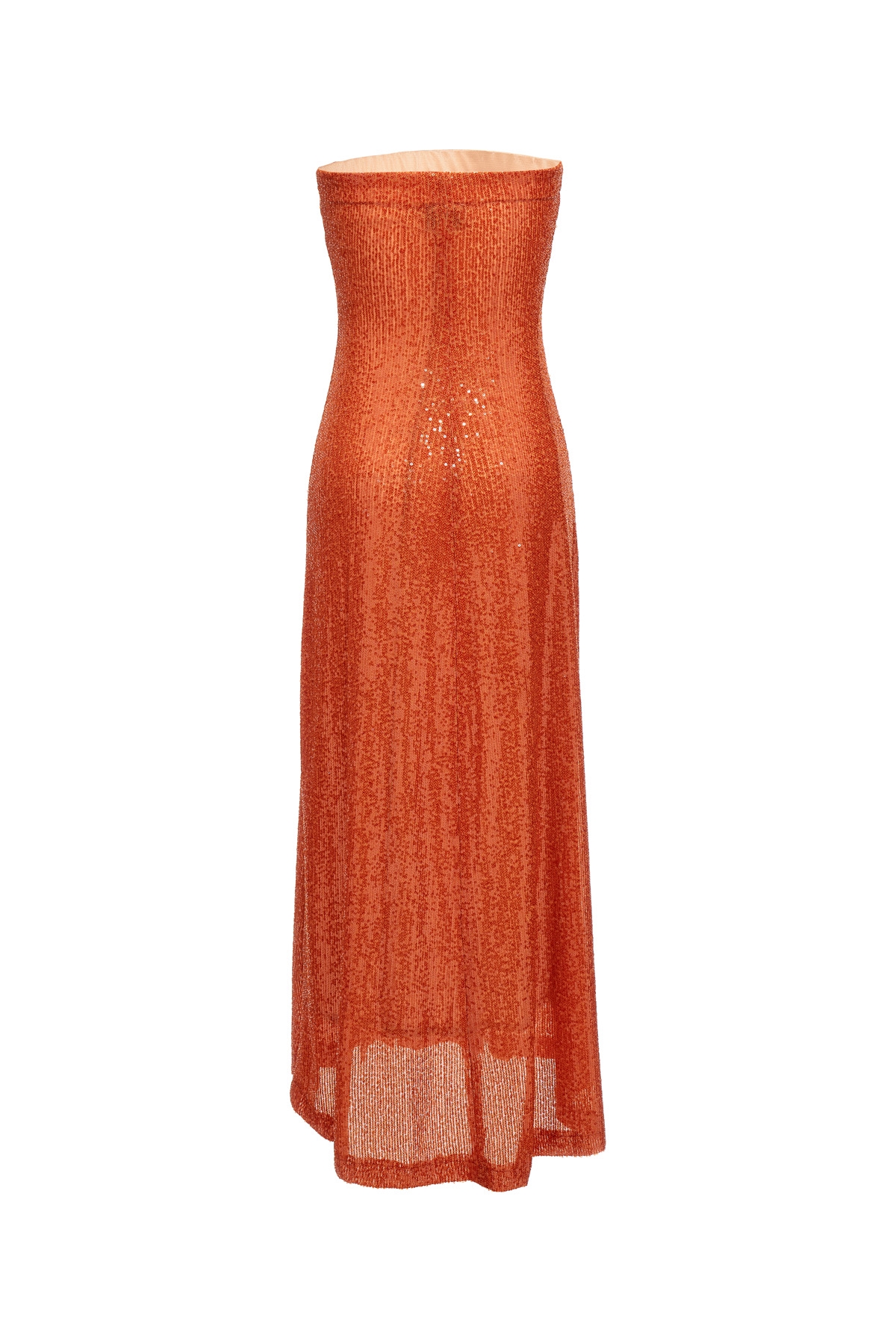 Gina' long stretch fabric dress with ll-over sequin appliques, elastic on the chest, off-the-shoulder style and a lining.