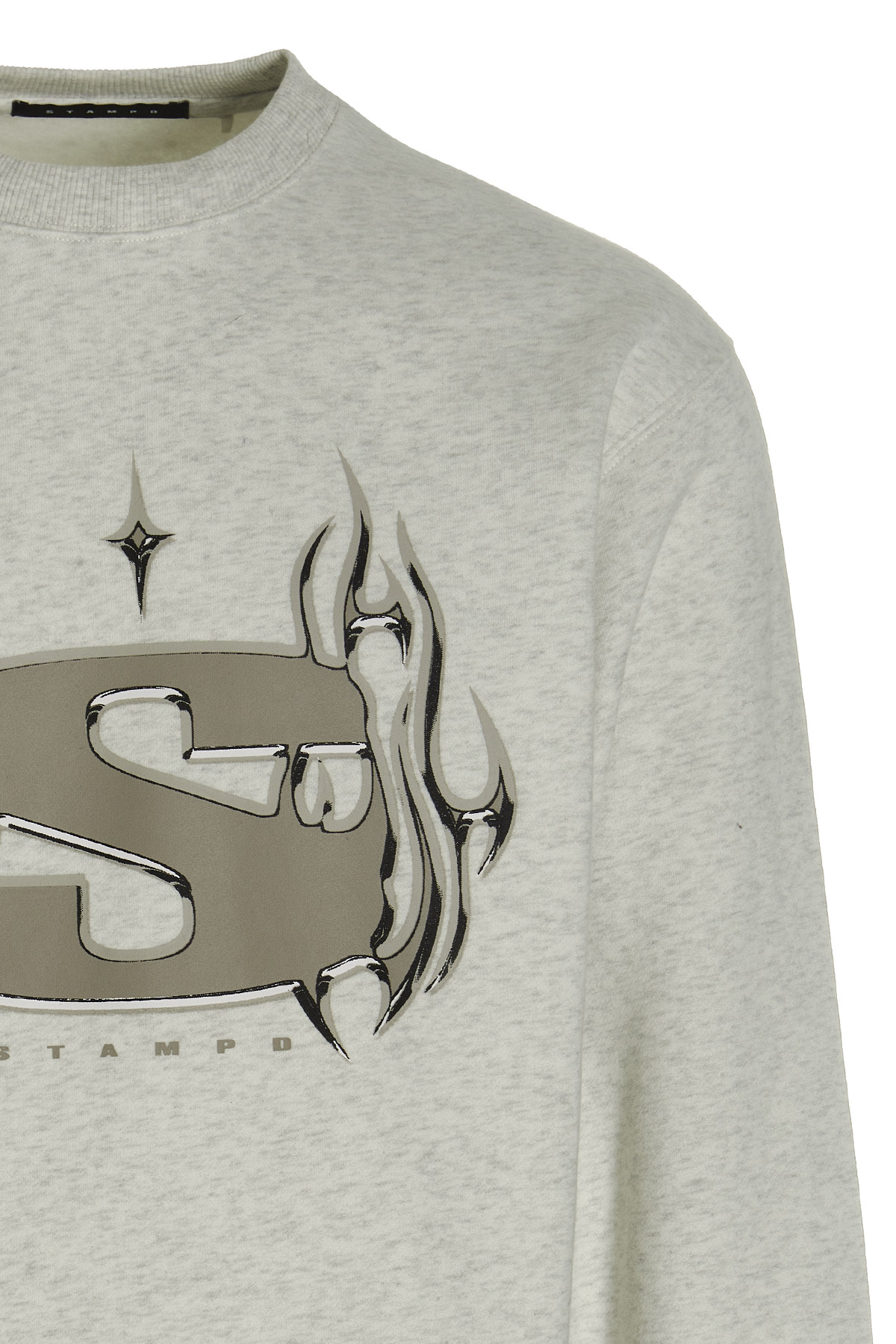'Chrome Flame' cotton blend sweatshirt with front print, crew neck, long cuffed sleeves.
