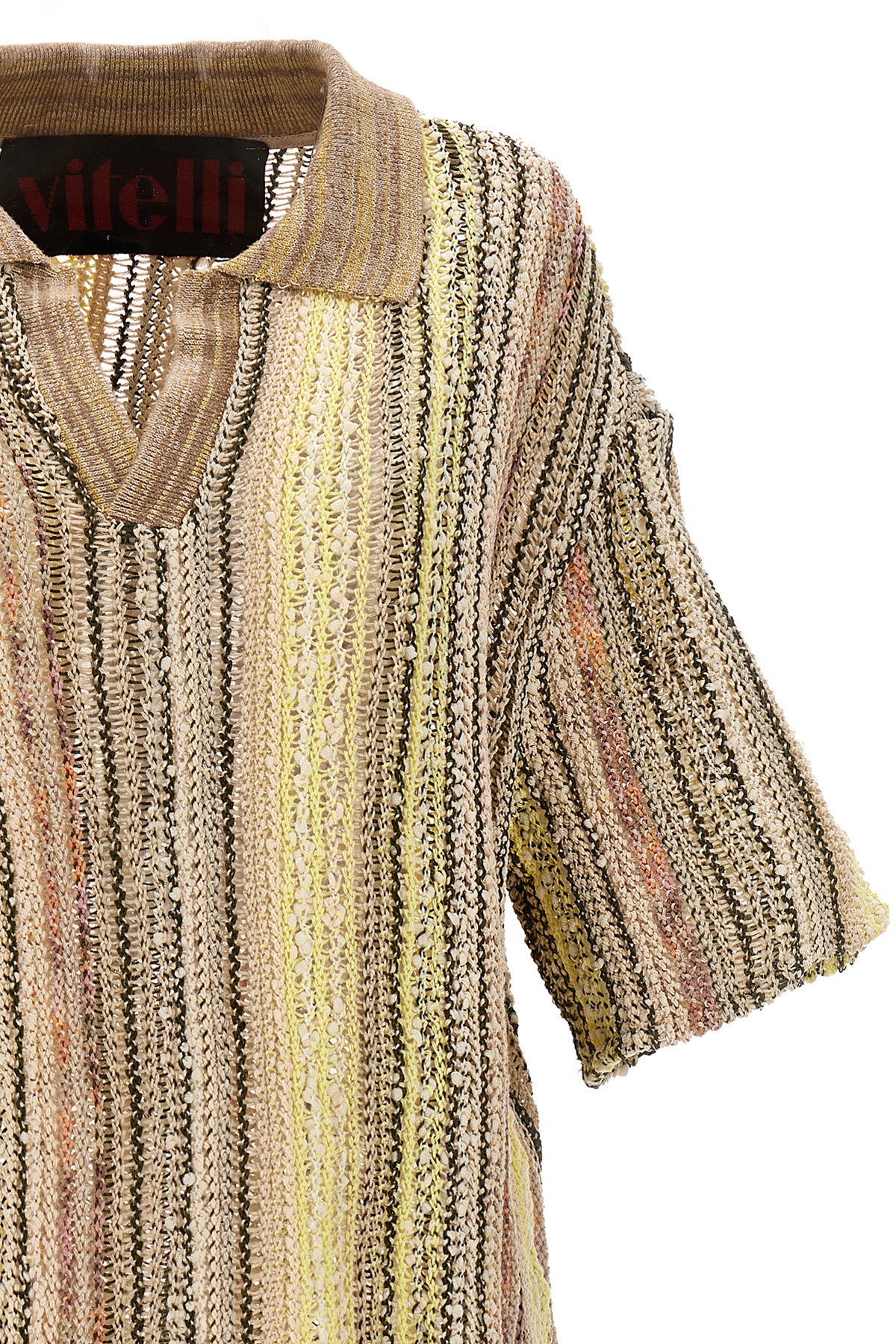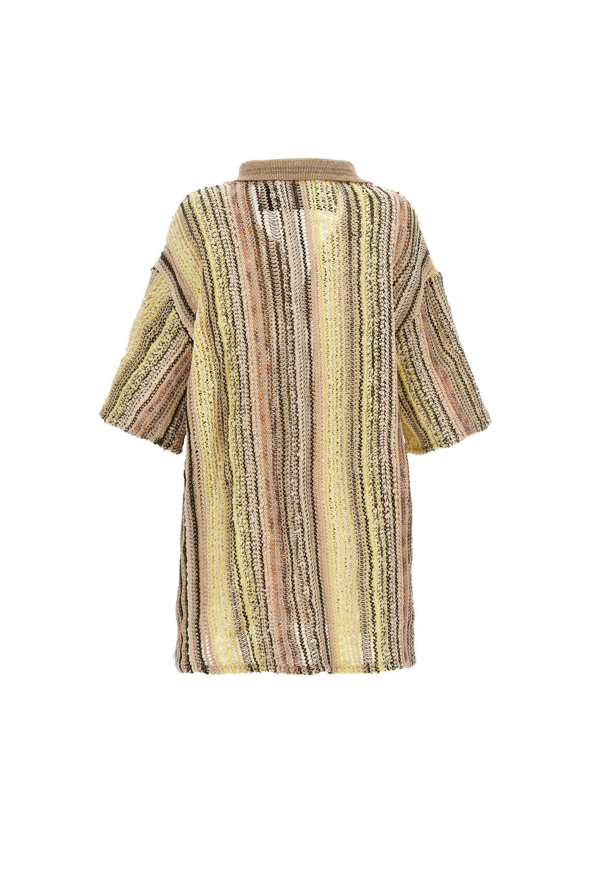 all-over jacquard patterned knit polo shirt, with V-neck and short sleeves. This product is made using handmade techniques, possible variations between one item and another are to be considered characteristics of the product.