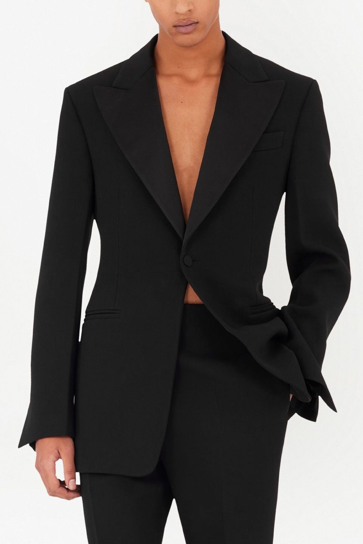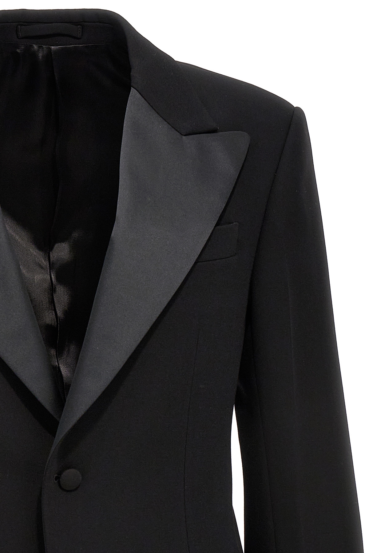 Drop 7 tuxedo single breast sable wool blazer with wide satin lapels. With back central split and sleeve splits. Lined model.