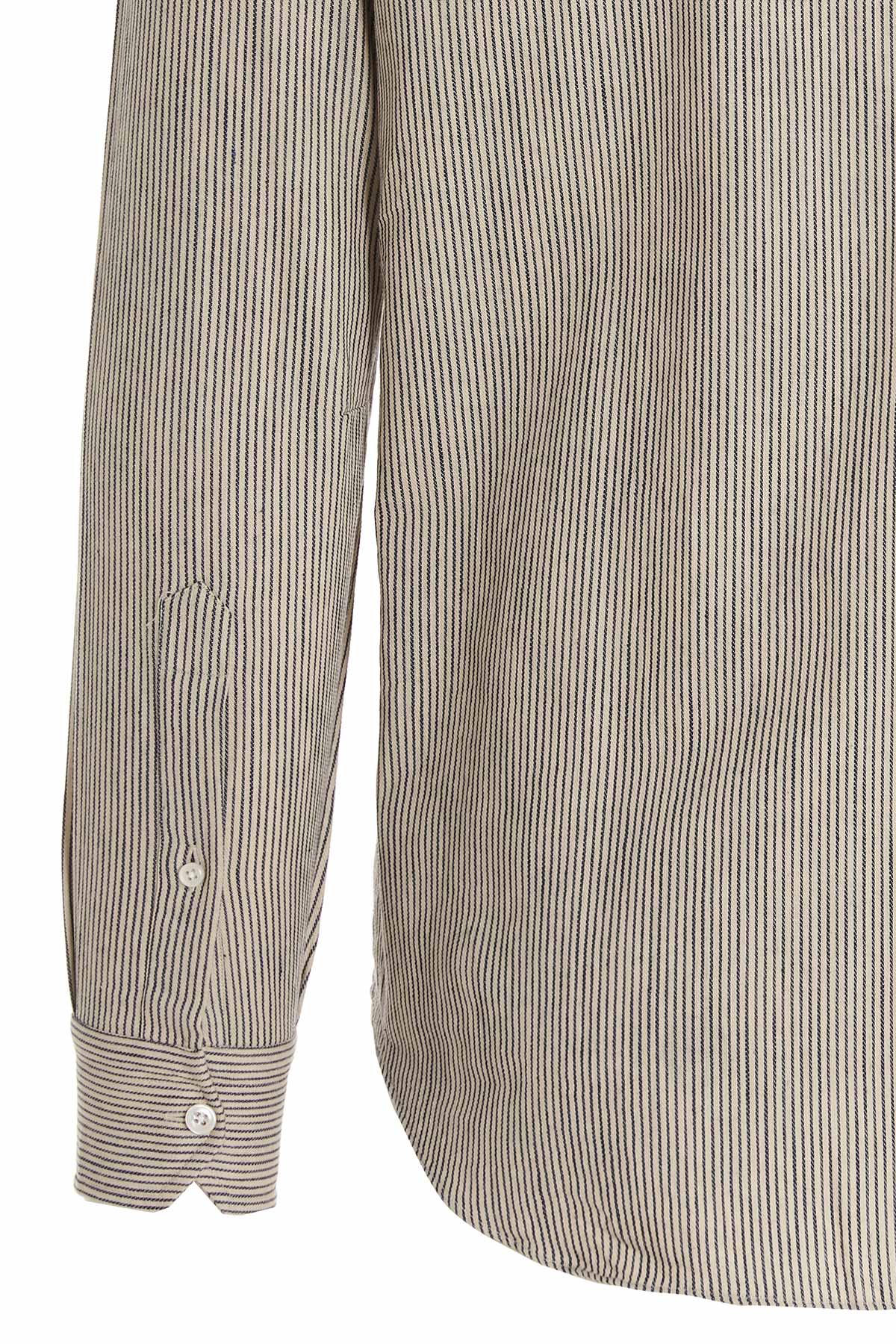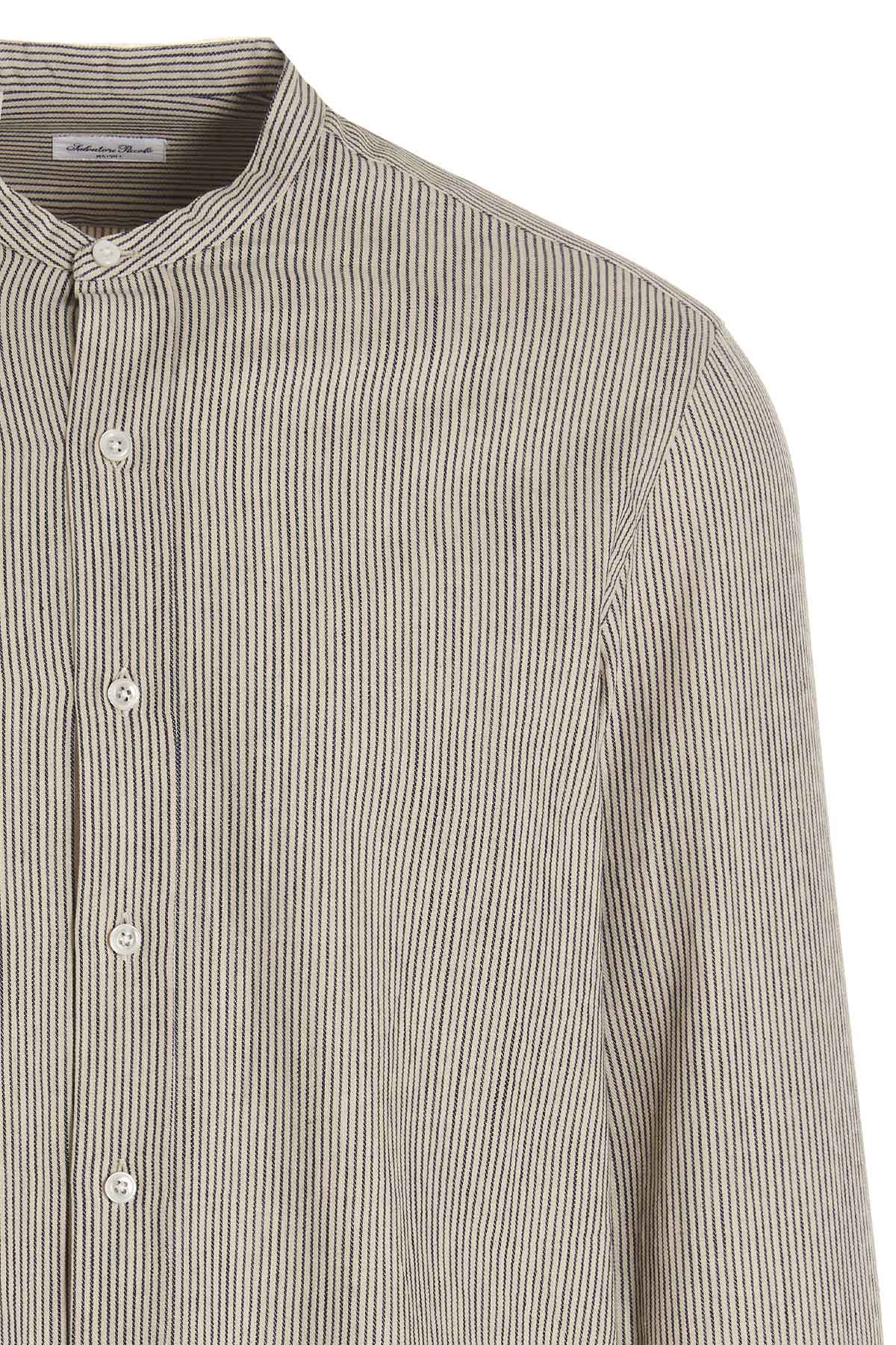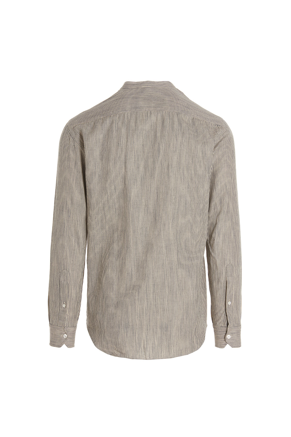 Striped cotton shirt, with mandarin collar, a button closure, and long cuffed sleeves.