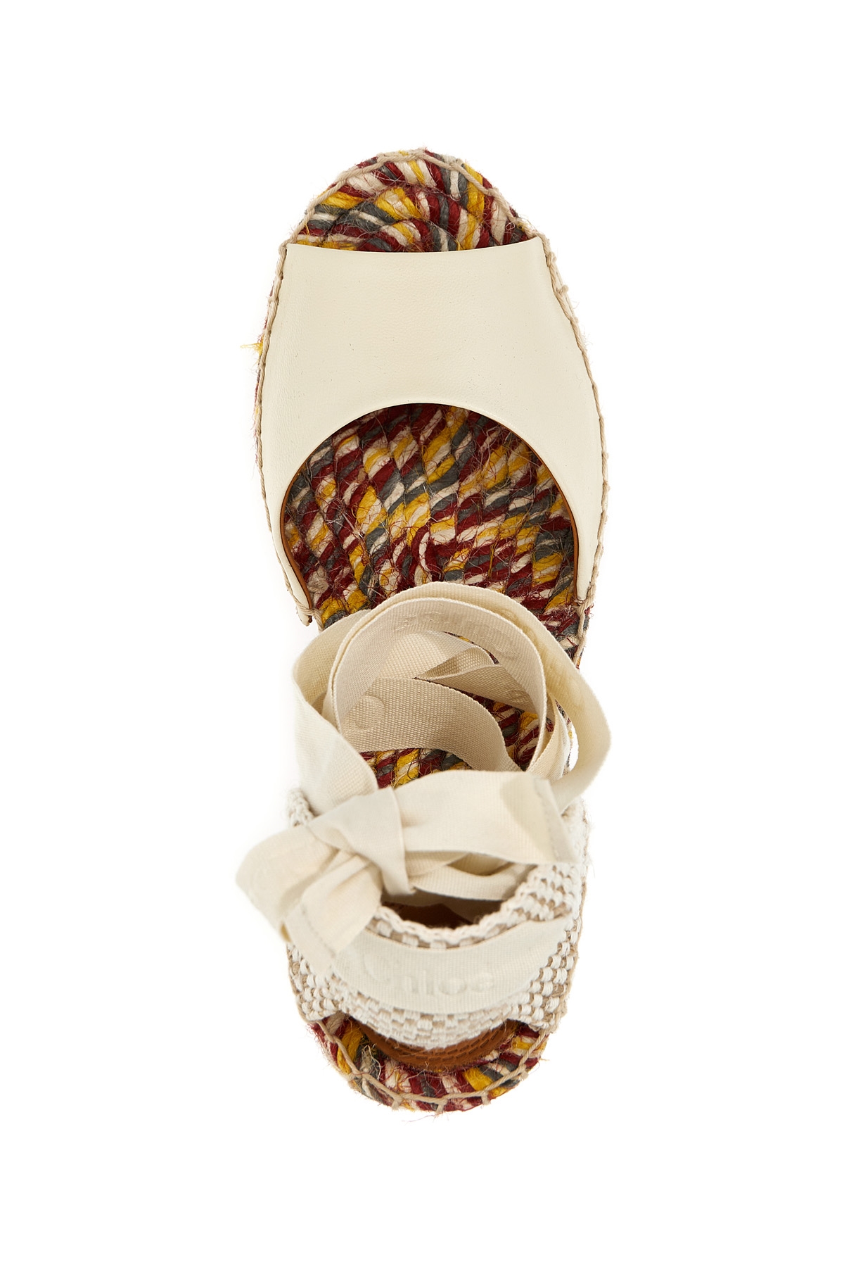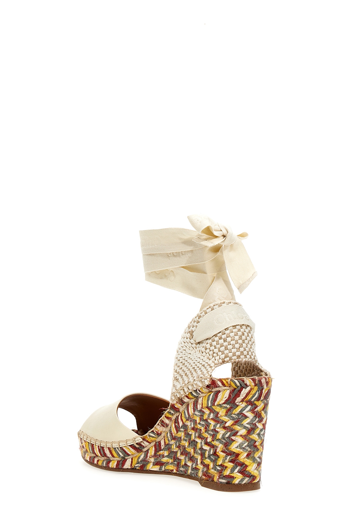 'Piia' braided fabric and leather wedges, fastening around the ankle, cord insole, a rubber sole.