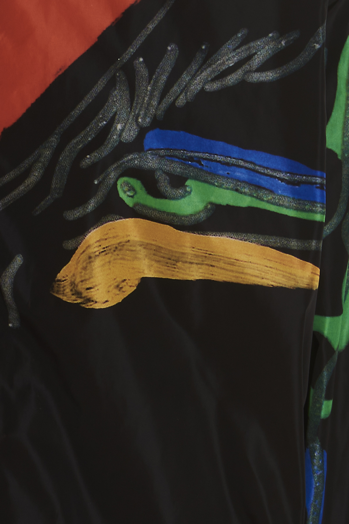 Nylon jacket with all-over print, pull-out hood, zip closure, pockets, long sleeves with elastic cuffs, adjustable drawstring at the hem.